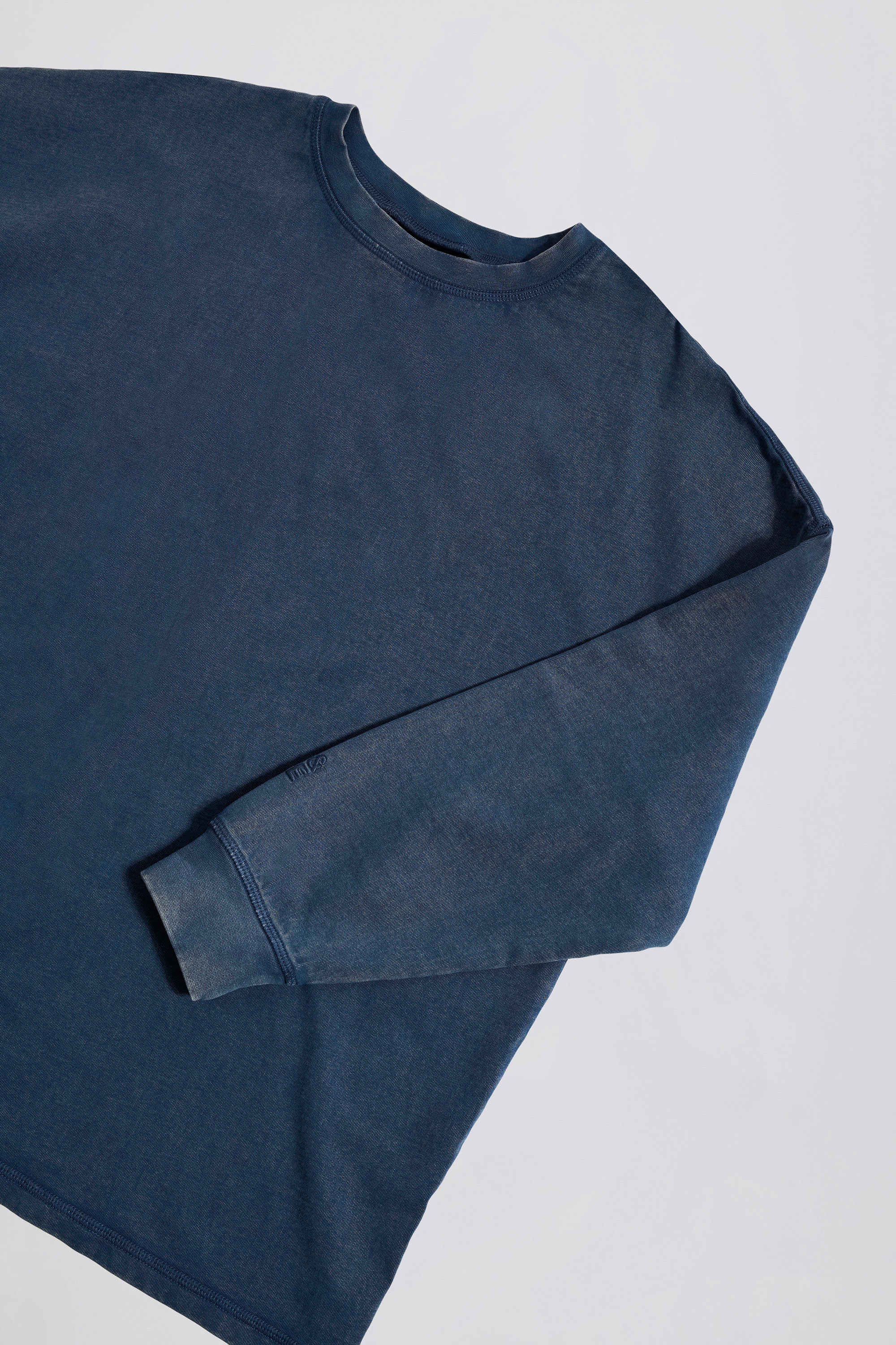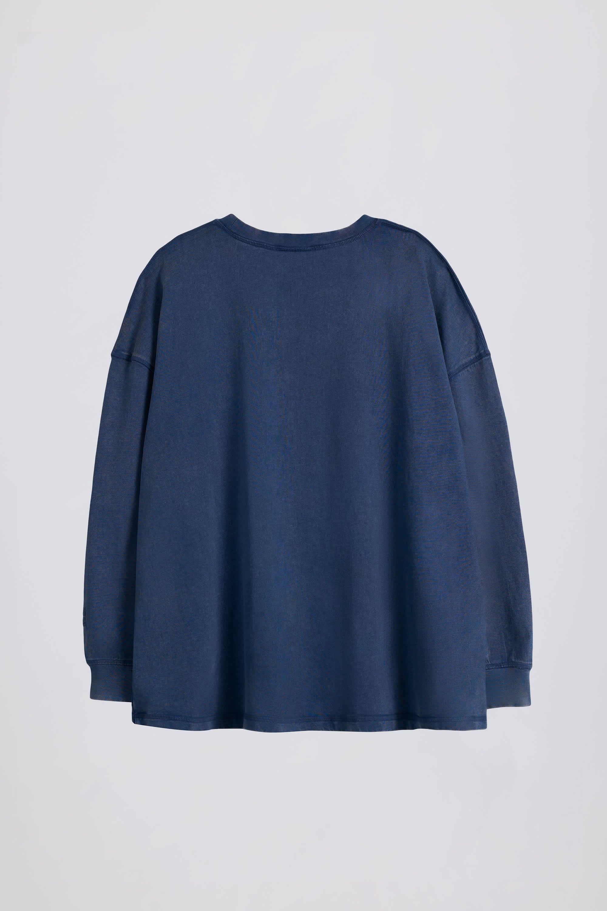 Acid Wash Long-Sleeve Oversized T-Shirt in Blue