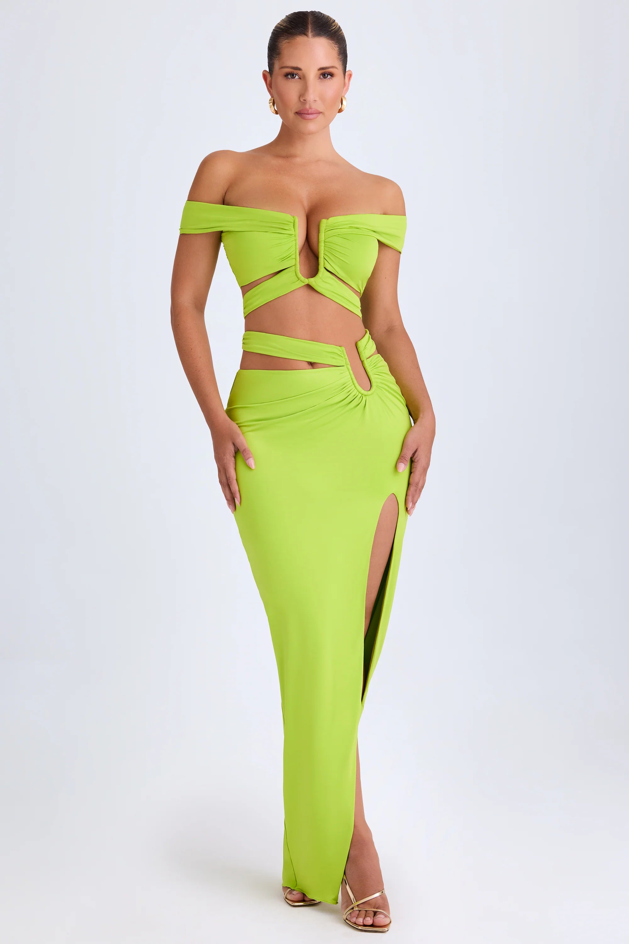 Asymmetric Cut-Out Maxi Skirt in Lime Green