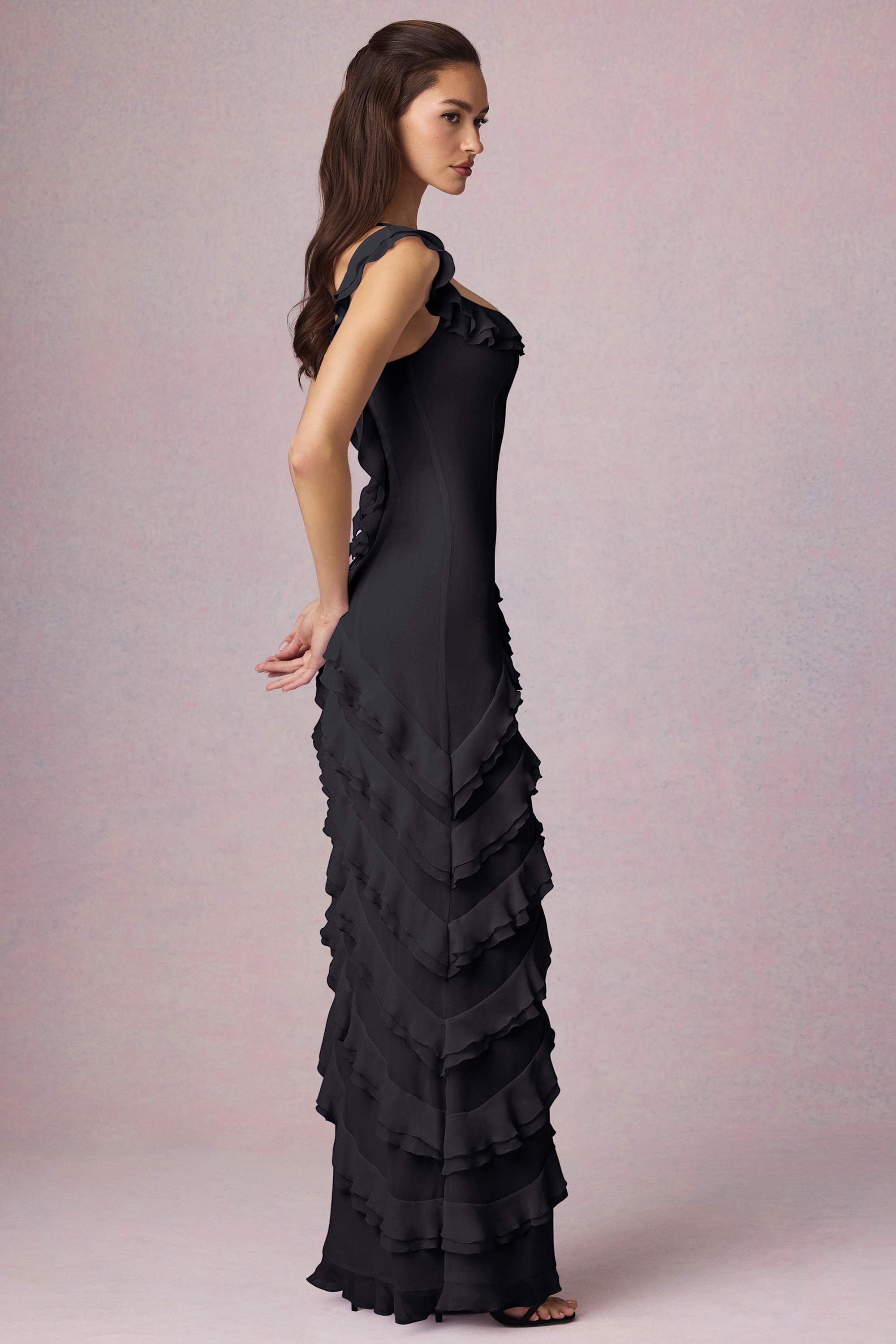 Dressing up? The Hera gown is made for you. Crafted from premium flowing chiffon and designed for a figure-skimming fit, it’s designed with a striking asymmetric neckline and tiered ruffle skirt with a thigh-high split for dramatic movement. It’s complete with criss-cross straps at the back and an adjustable lace-up back, inspired by classic romantic styles, and perfect for your most memorable occasions.