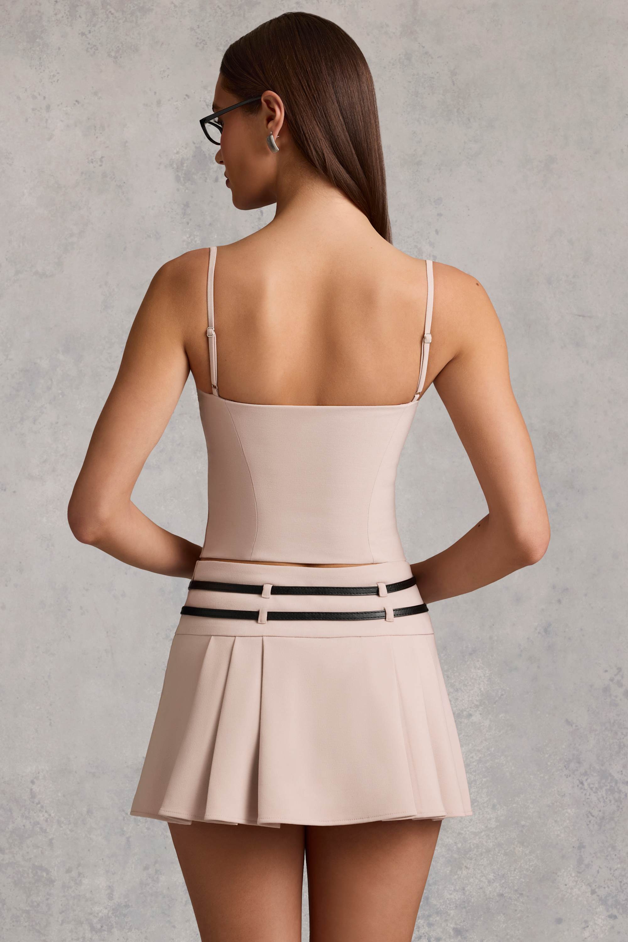 Belted Low-Rise Pleated Mini Skirt in Mushroom