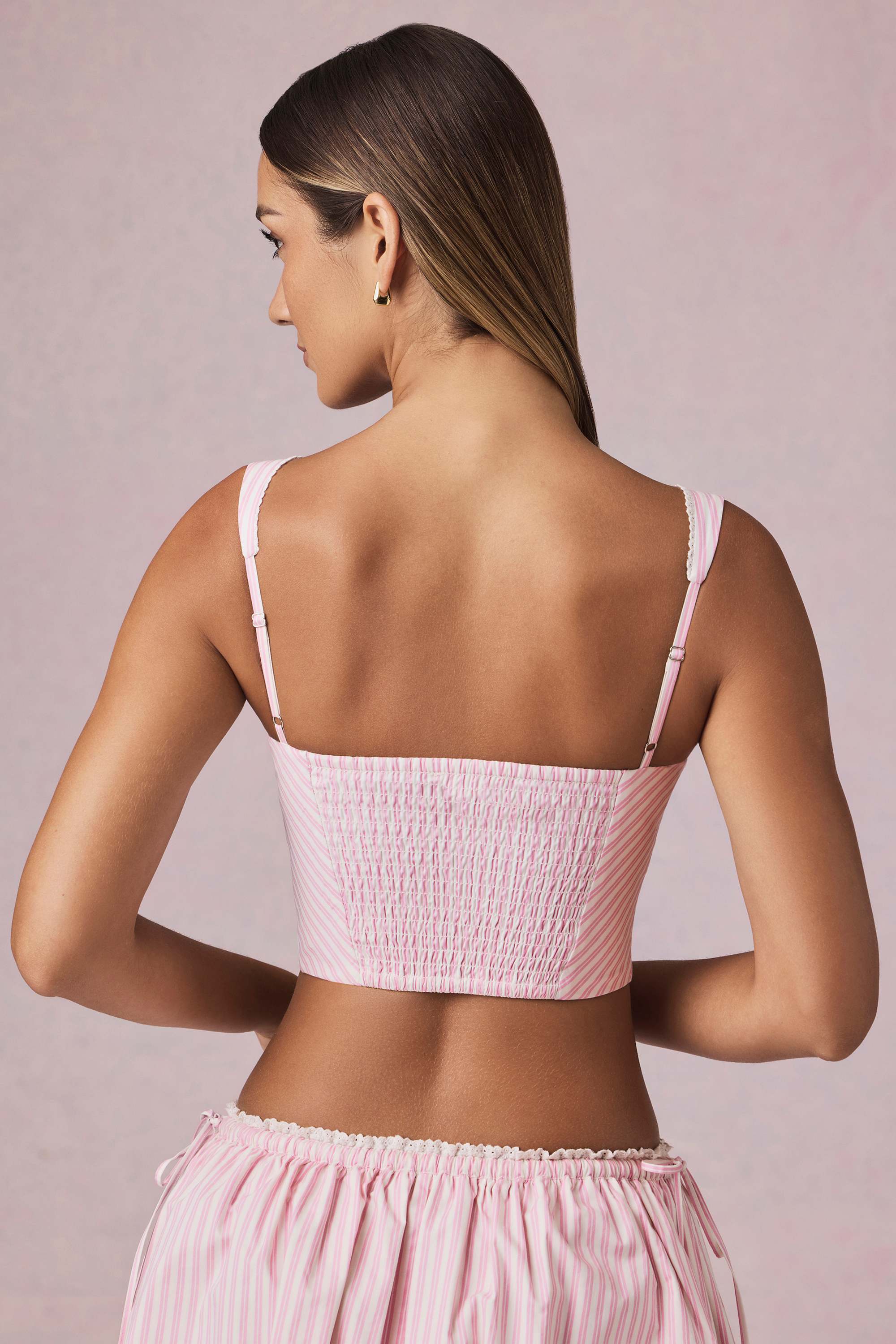 Bow-Detail Crop Top in Soft Mauve Stripe