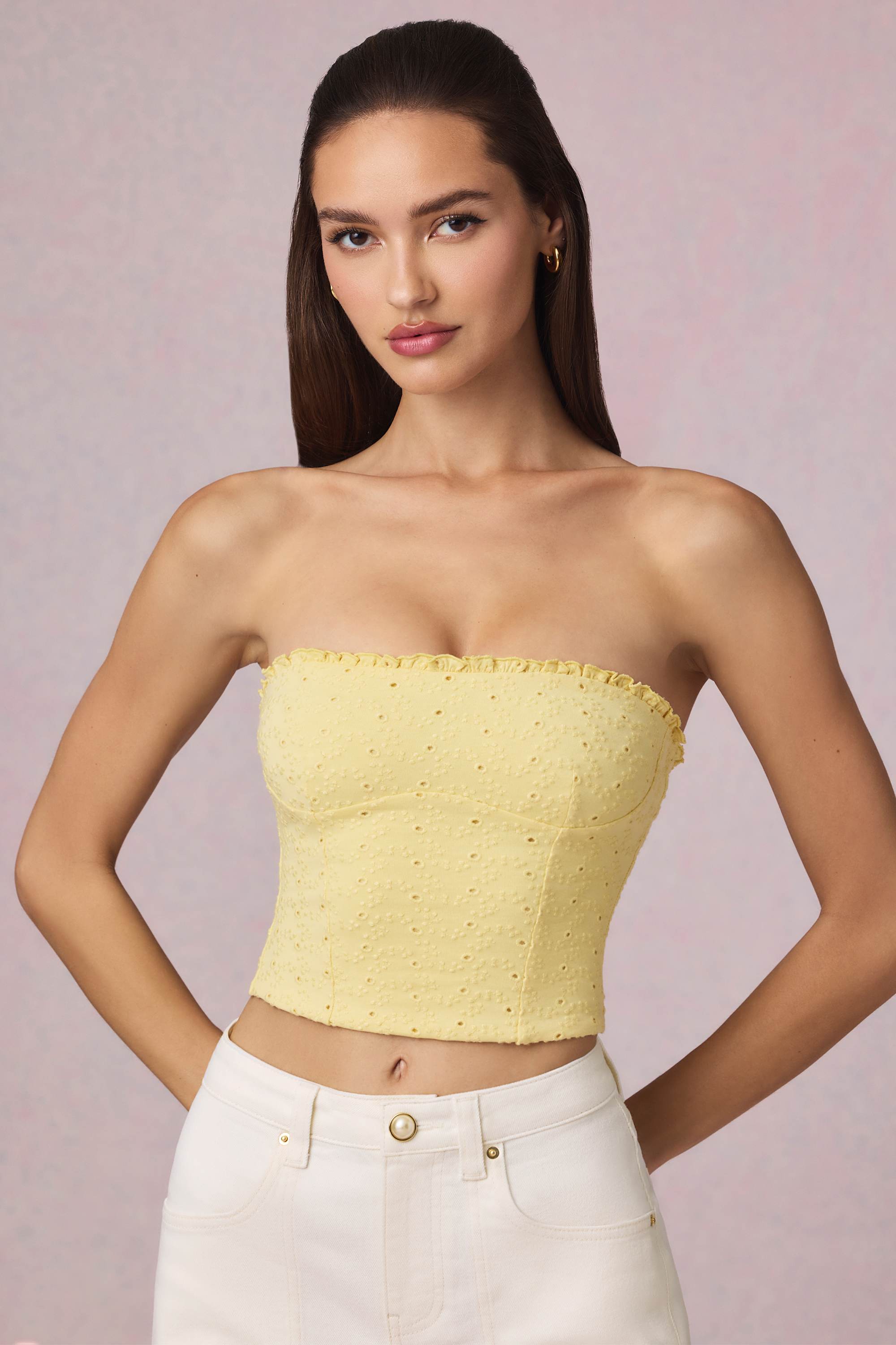 New staples, dreamy textures. Perfect for styling with your favourite denim, the Hania camisole top is crafted from premium cotton broderie anglaise with a touch of stretch for comfort. It features removable straps for versatile styling and is traced with delicate frill detailing at the front and back.