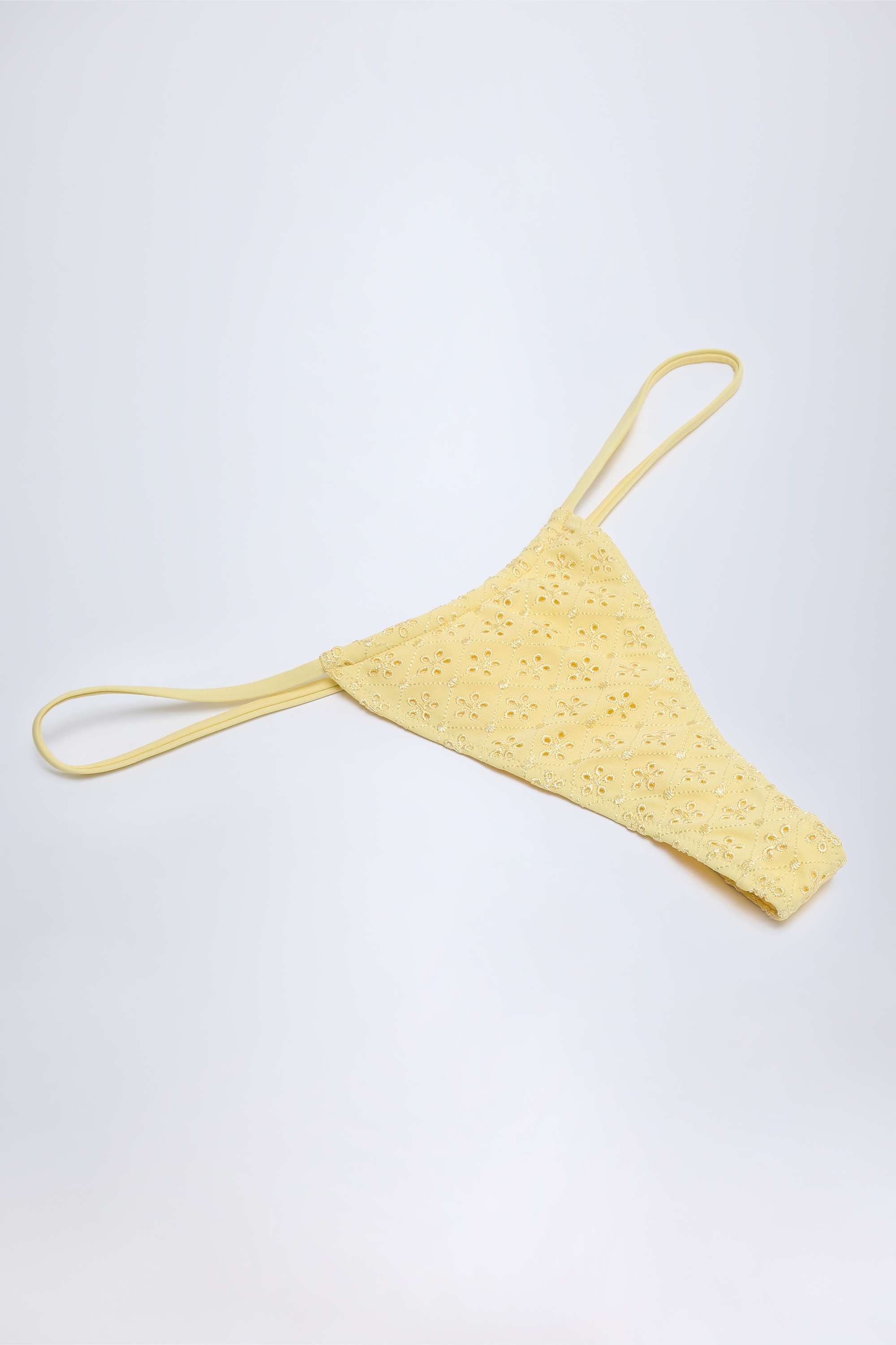 Broderie Anglaise Drawstring Bikini Bottoms in Lemon Yellow