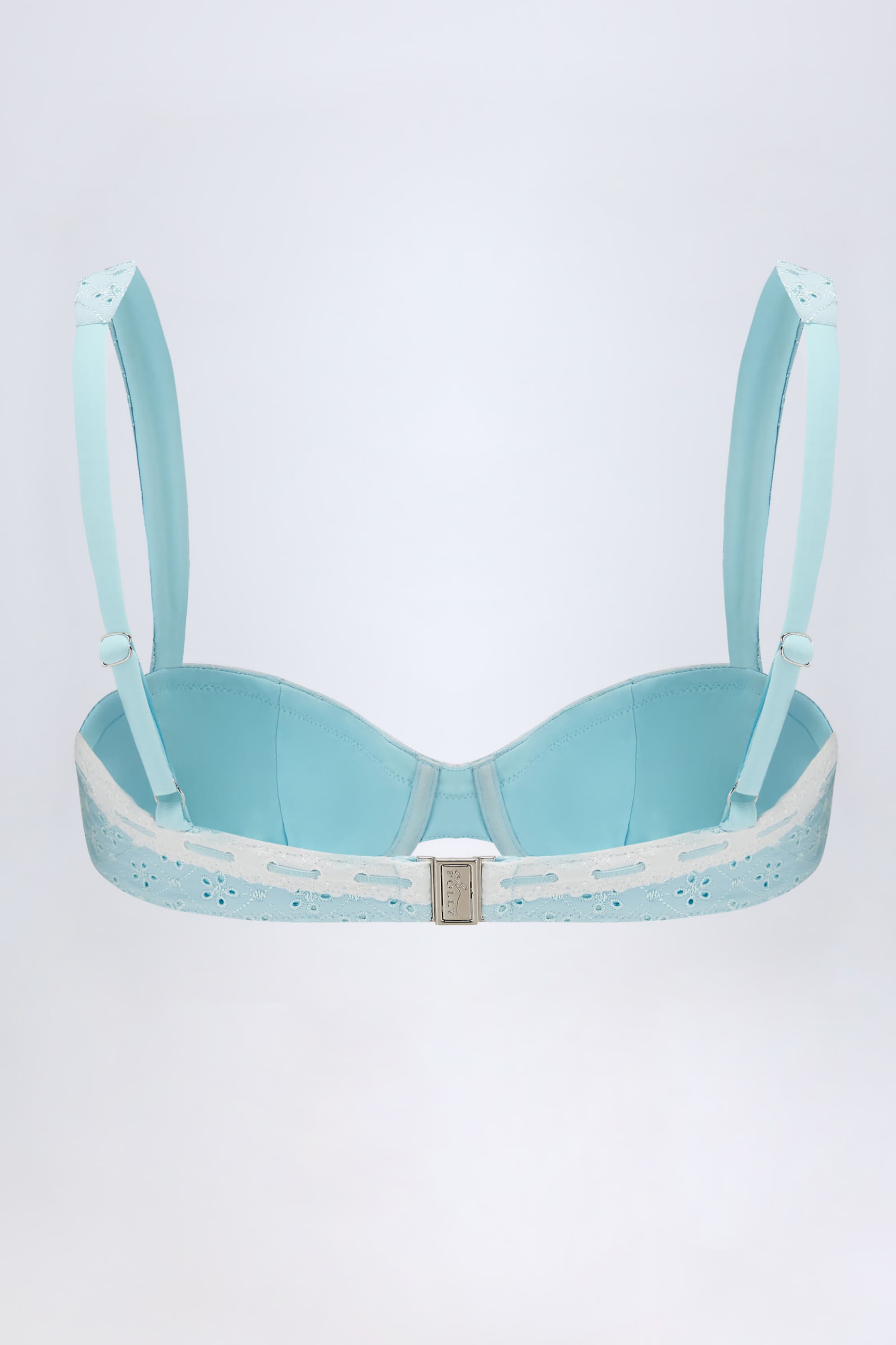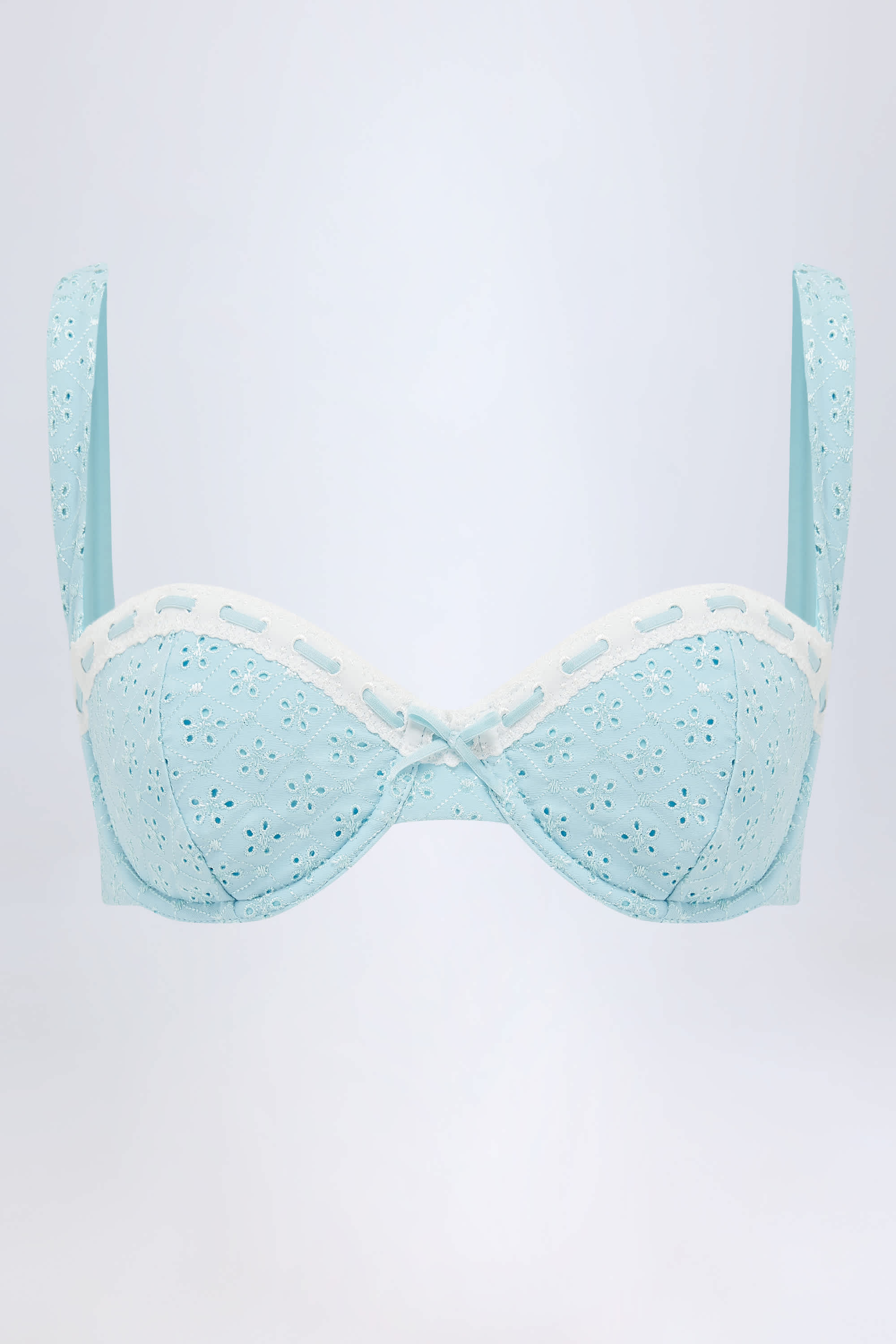 The sweetest swim staples. Our take on classic styles, the Ravello bikini top is crafted from premium broderie anglaise swim fabric with a touch of stretch. Underwired for enhanced support, it features push-up moulded cups, adjustable tapered straps for your perfect fit and is traced with the prettiest contrasting stretch-ribbon detailing.