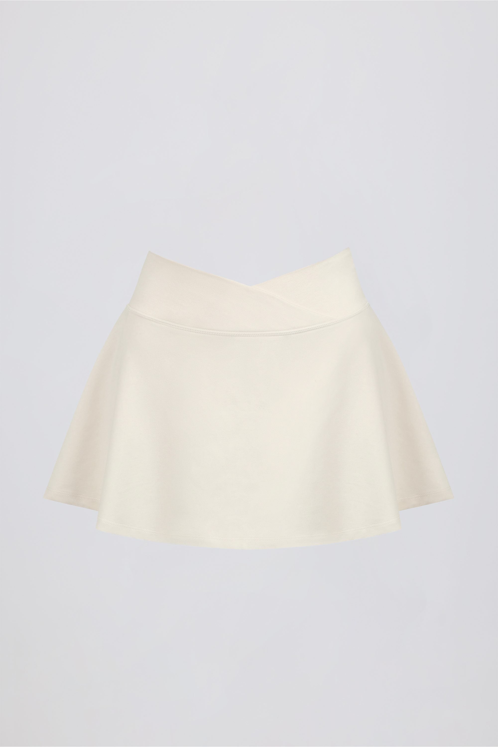 Soft staples. Perfect for sunny day styling, this mini skort is crafted from our soft marl jersey with a soft-touch feel and ample stretch. Set on a crossover elasticated waistband that creates an instant sculpting effect, it features built-in jersey shorts for enhanced coverage, whatever the day brings, and a figure-skimming A-line overlay.