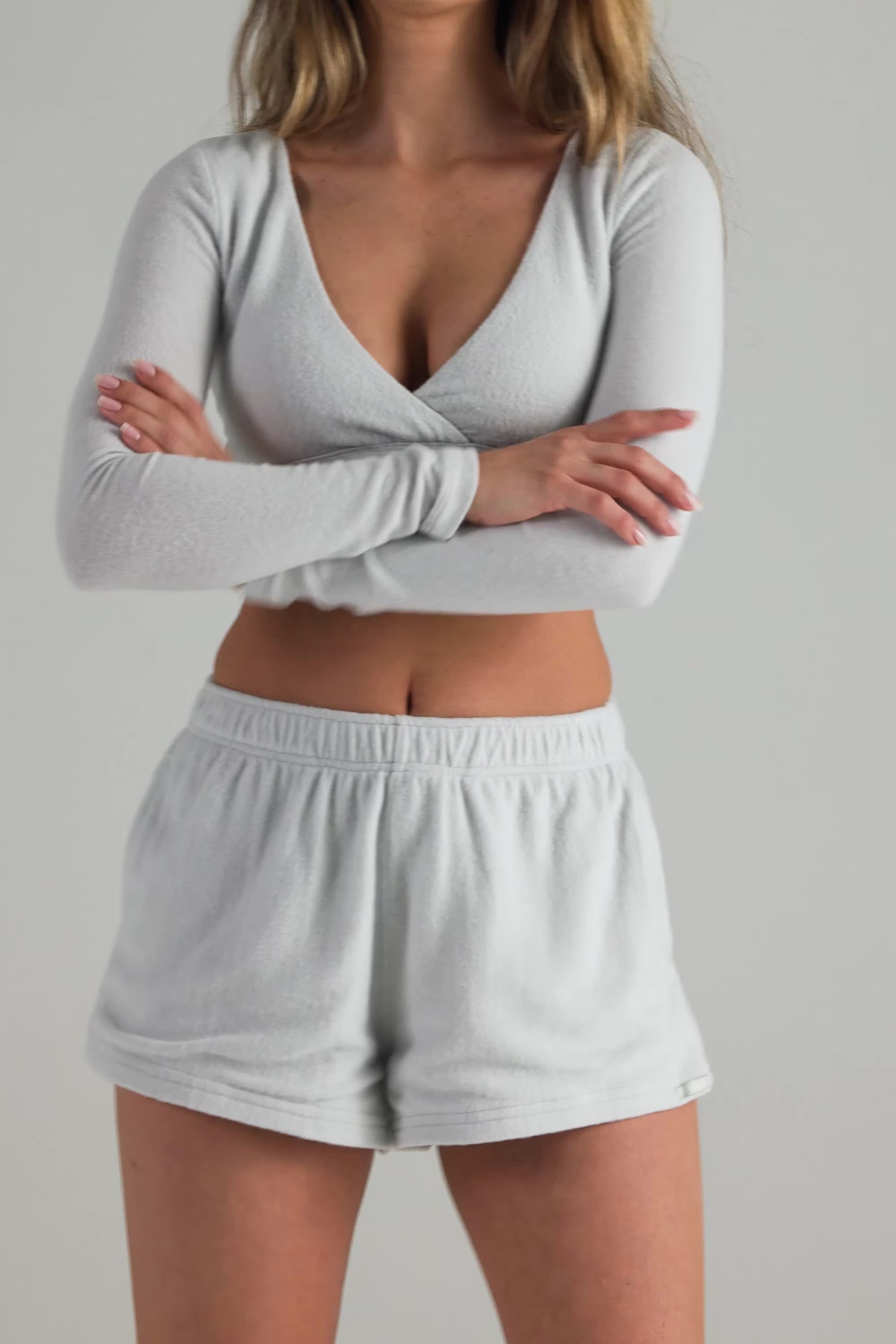 Brushed Jersey Elasticated Mini Shorts in Fog Grey
