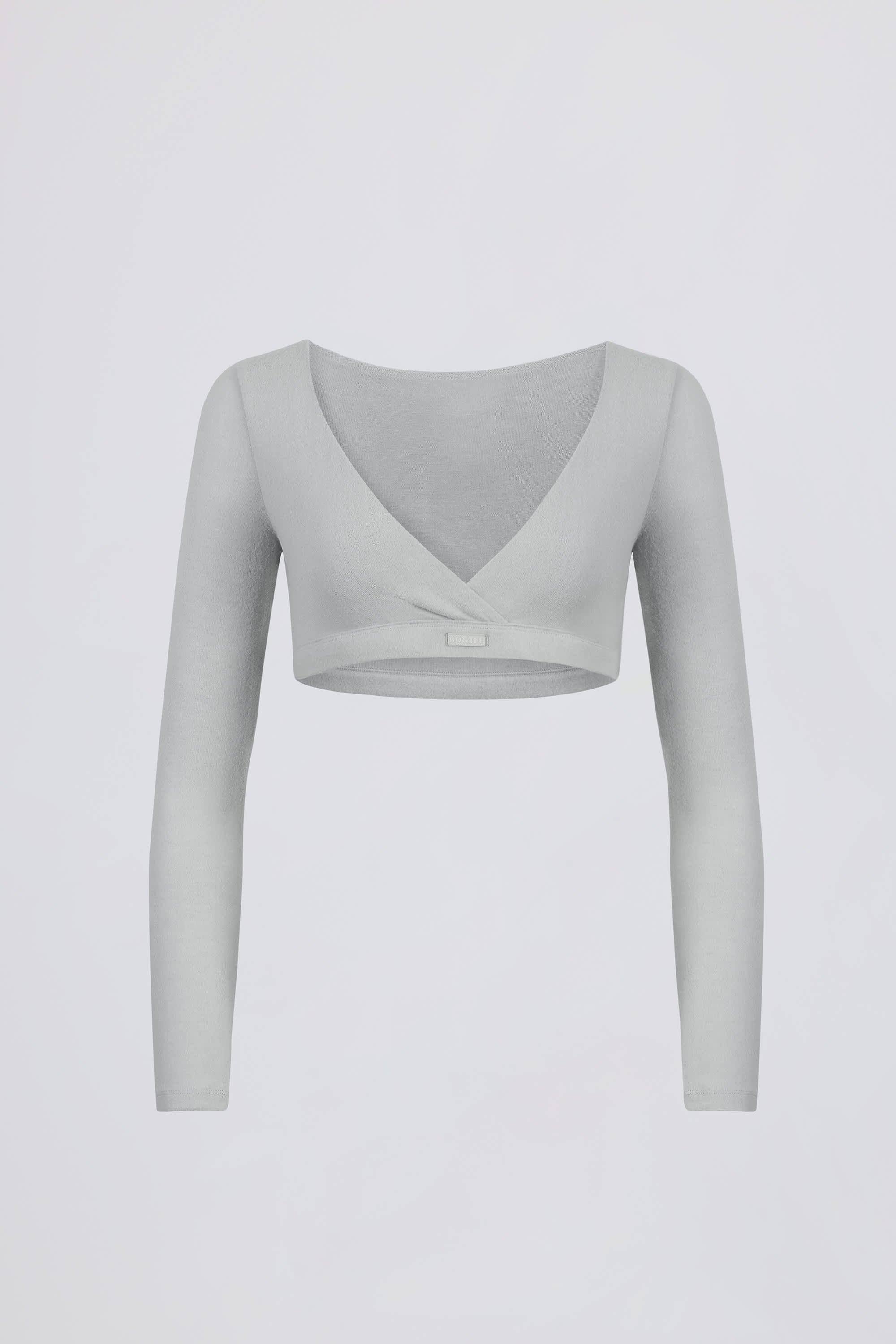 Brushed Jersey Wrap Crop Top in Fog Grey