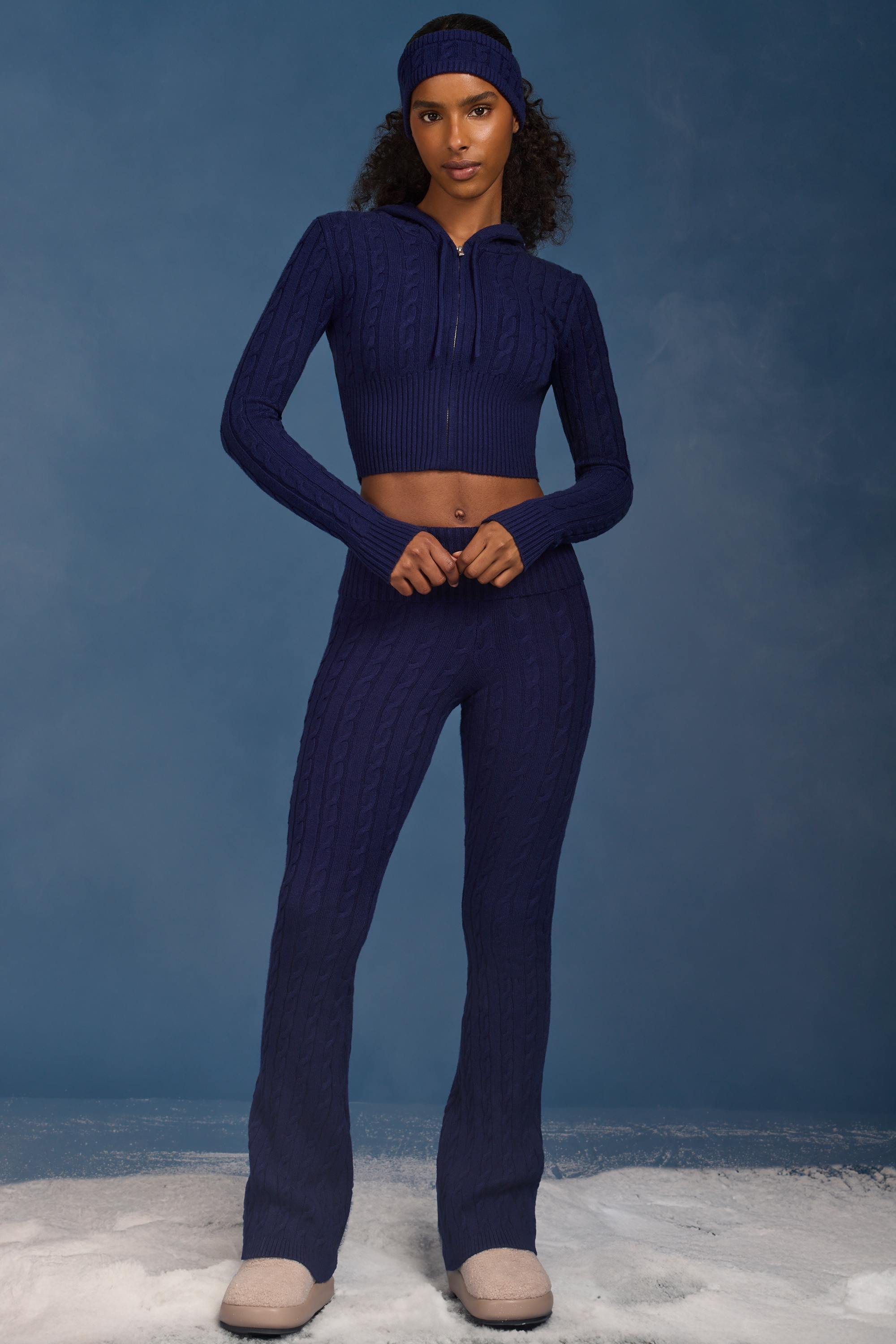 You’ll live in these. Perfectly cosy and so soft, these trousers will become a staple in your winter rotation. They’re spun to a chunky cable-knit design and set on a ribbed foldover waistband that can be adjusted for your perfect fit. They’re designed for a universally flattering mid-rise fit and fall to a flared-leg silhouette.