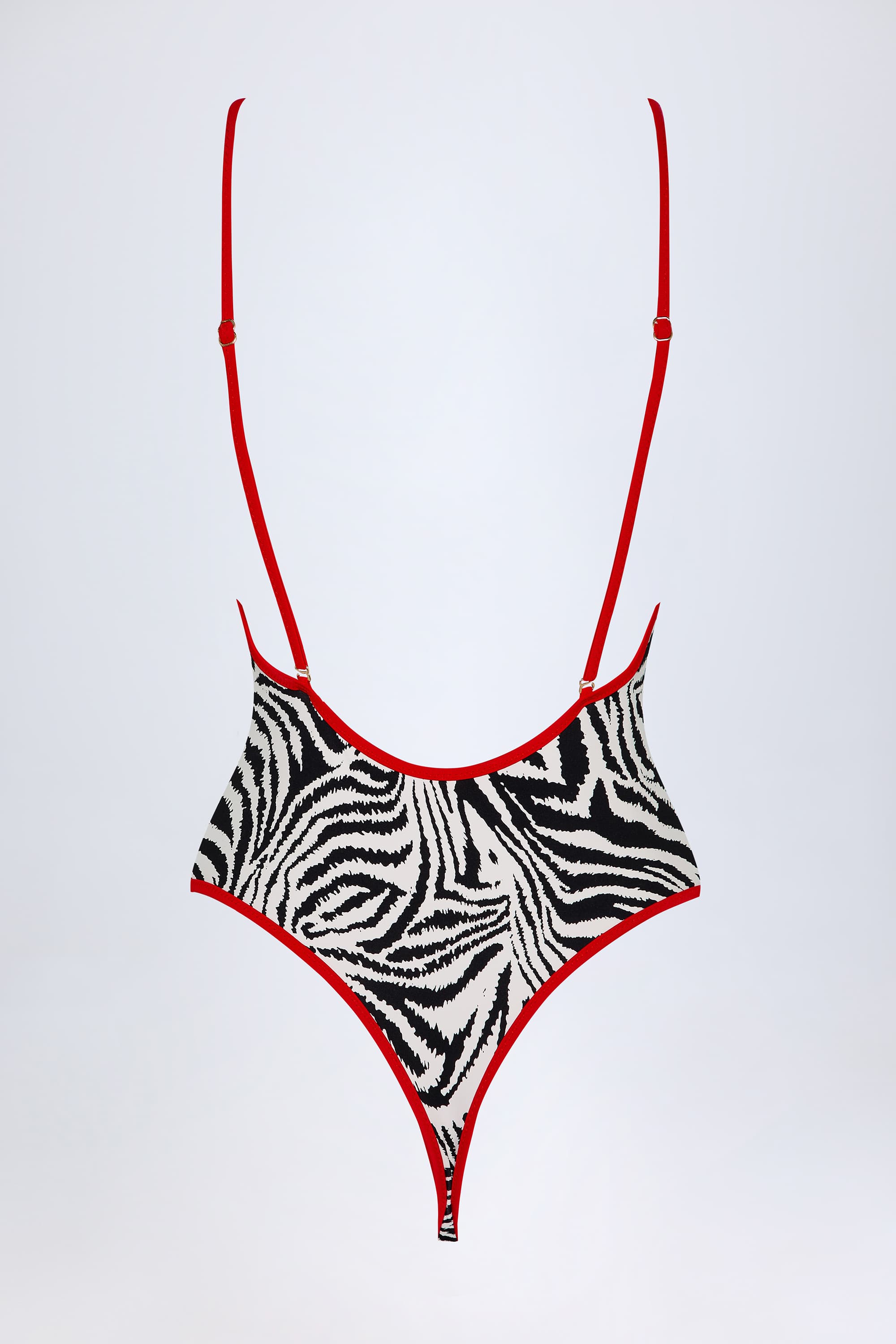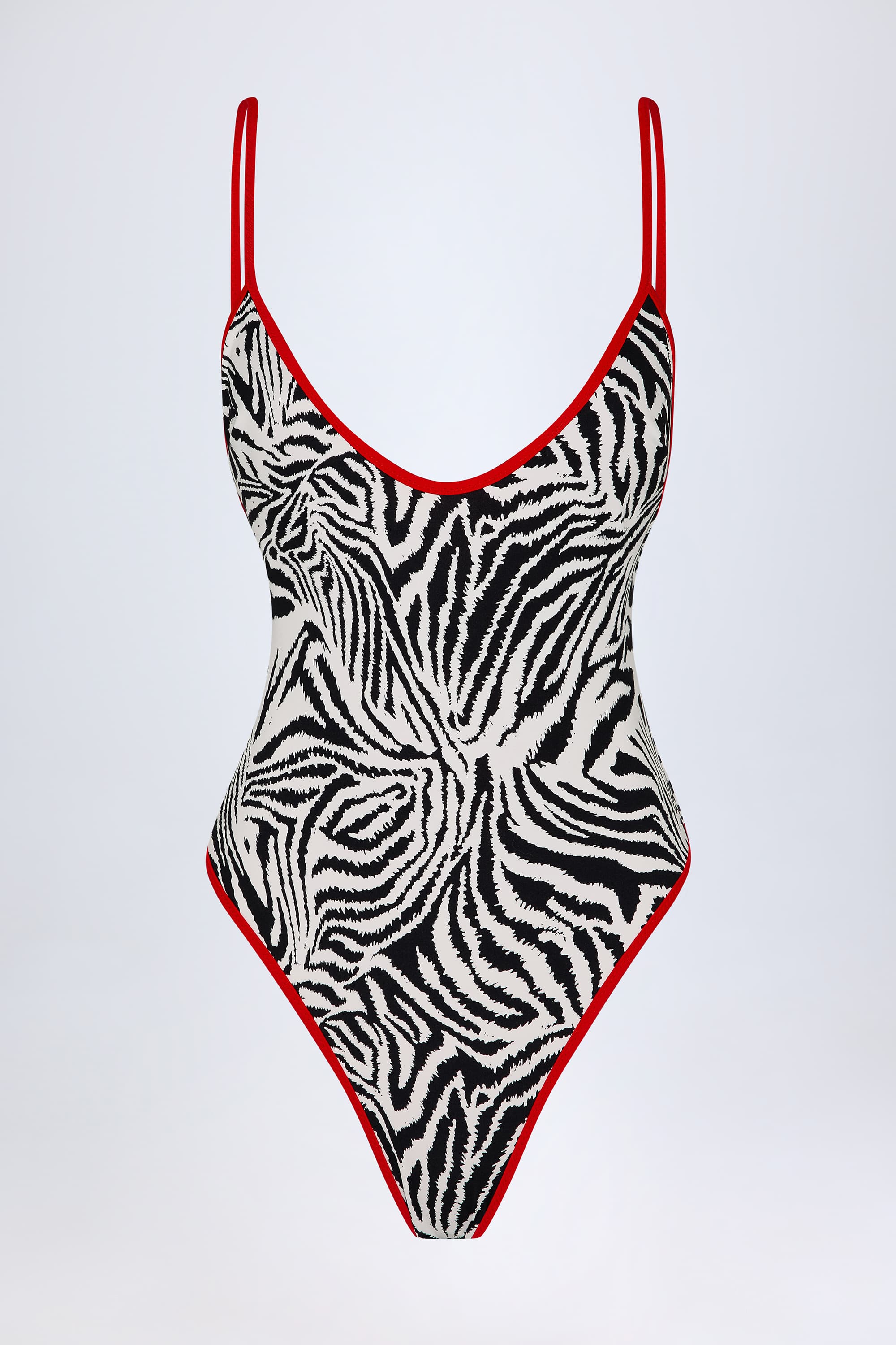 Charm-Detail Cross-Back Swimsuit in Zebra Print