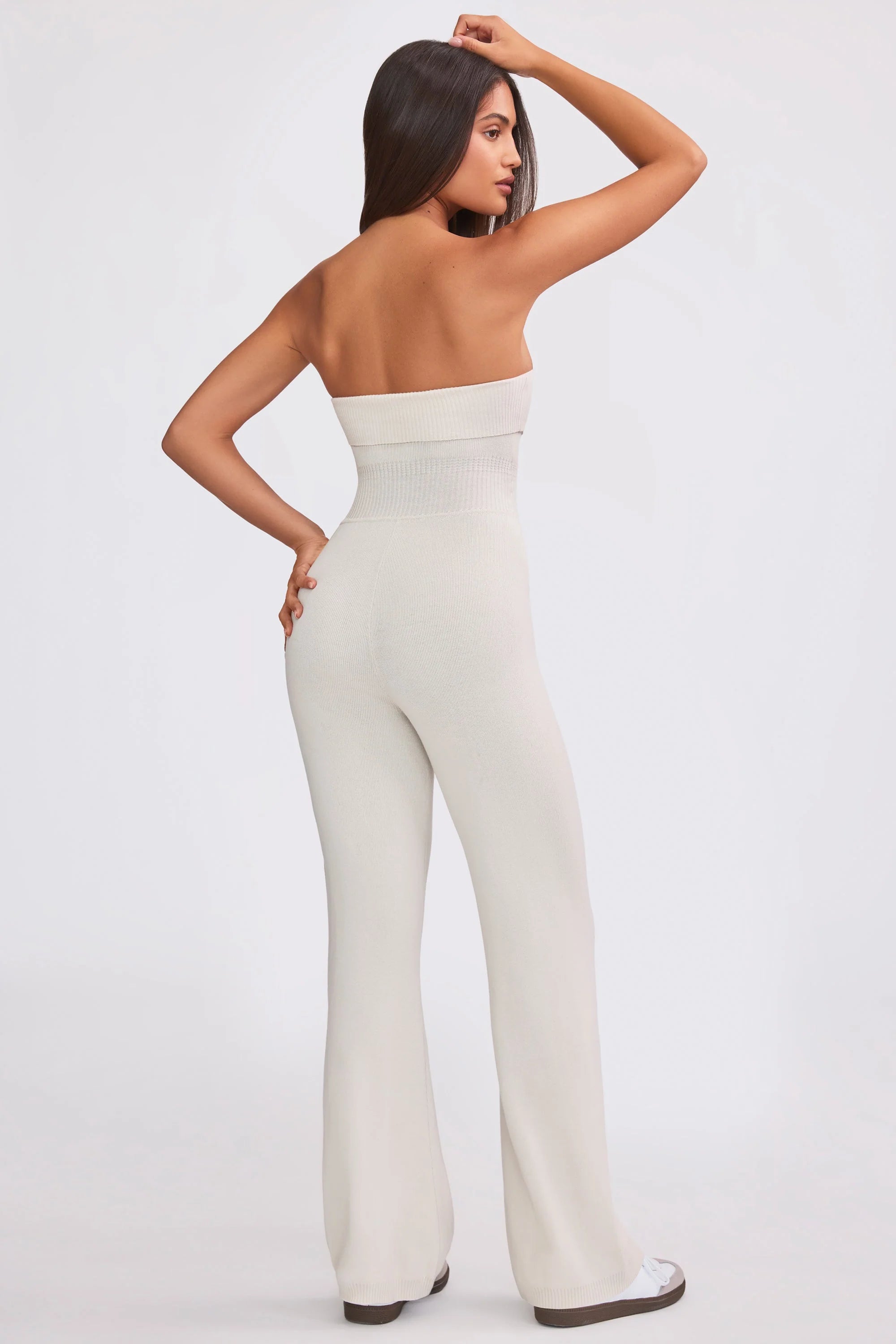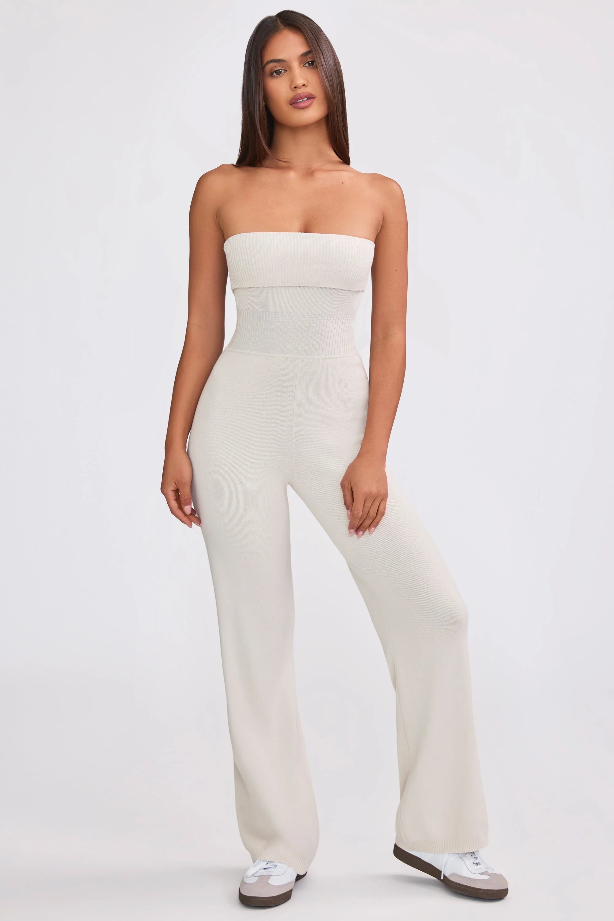 Designed to be loved by you, every day. This jumpsuit is a sleek wardrobe essential that can be worn on its own or layered with the Lounge shrug for a coordinated look. It’s crafted from our stretchy chunky-knit fabric with a foldover bandeau neckline and features a body-contouring fit with a flattering kick flare trouser.
