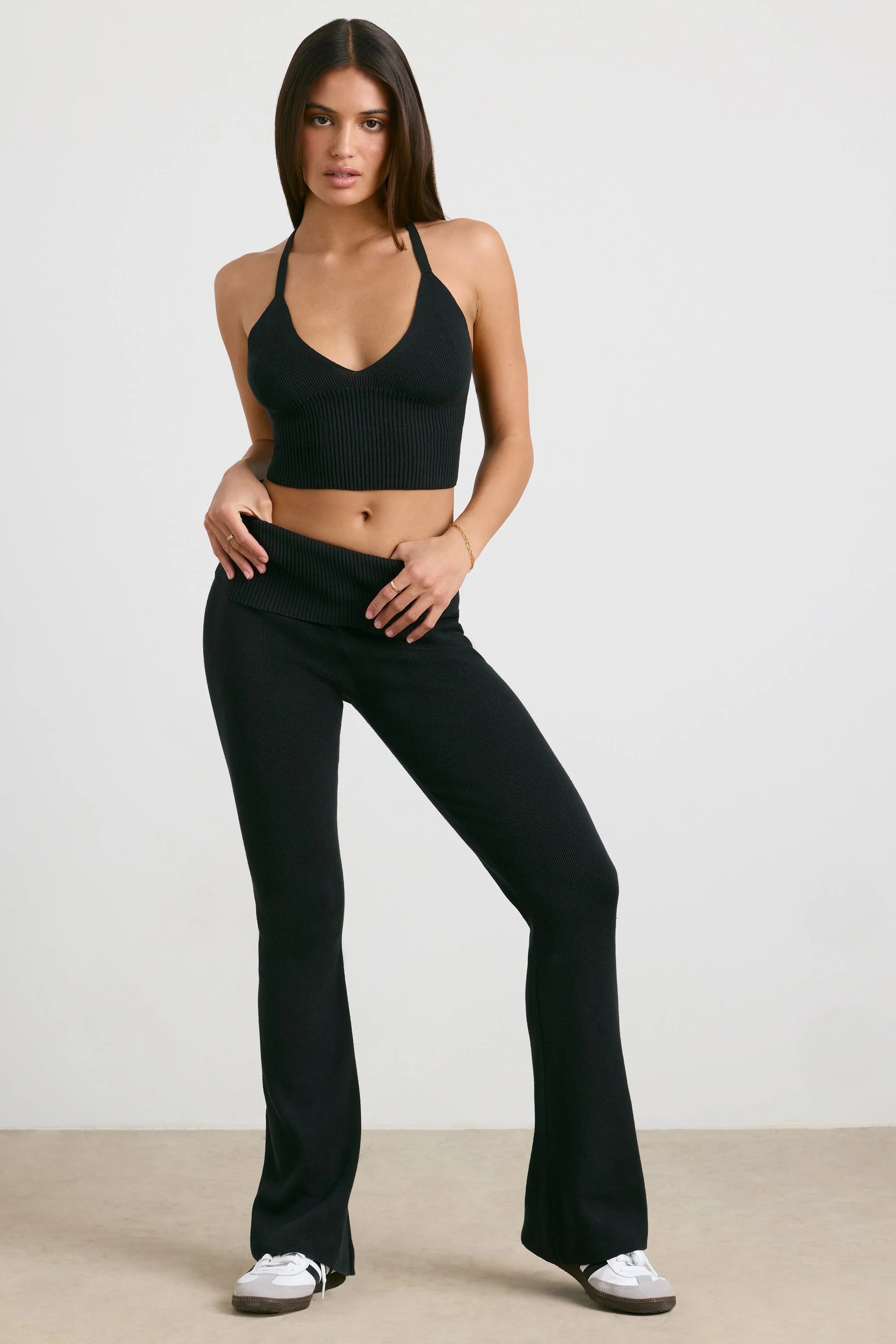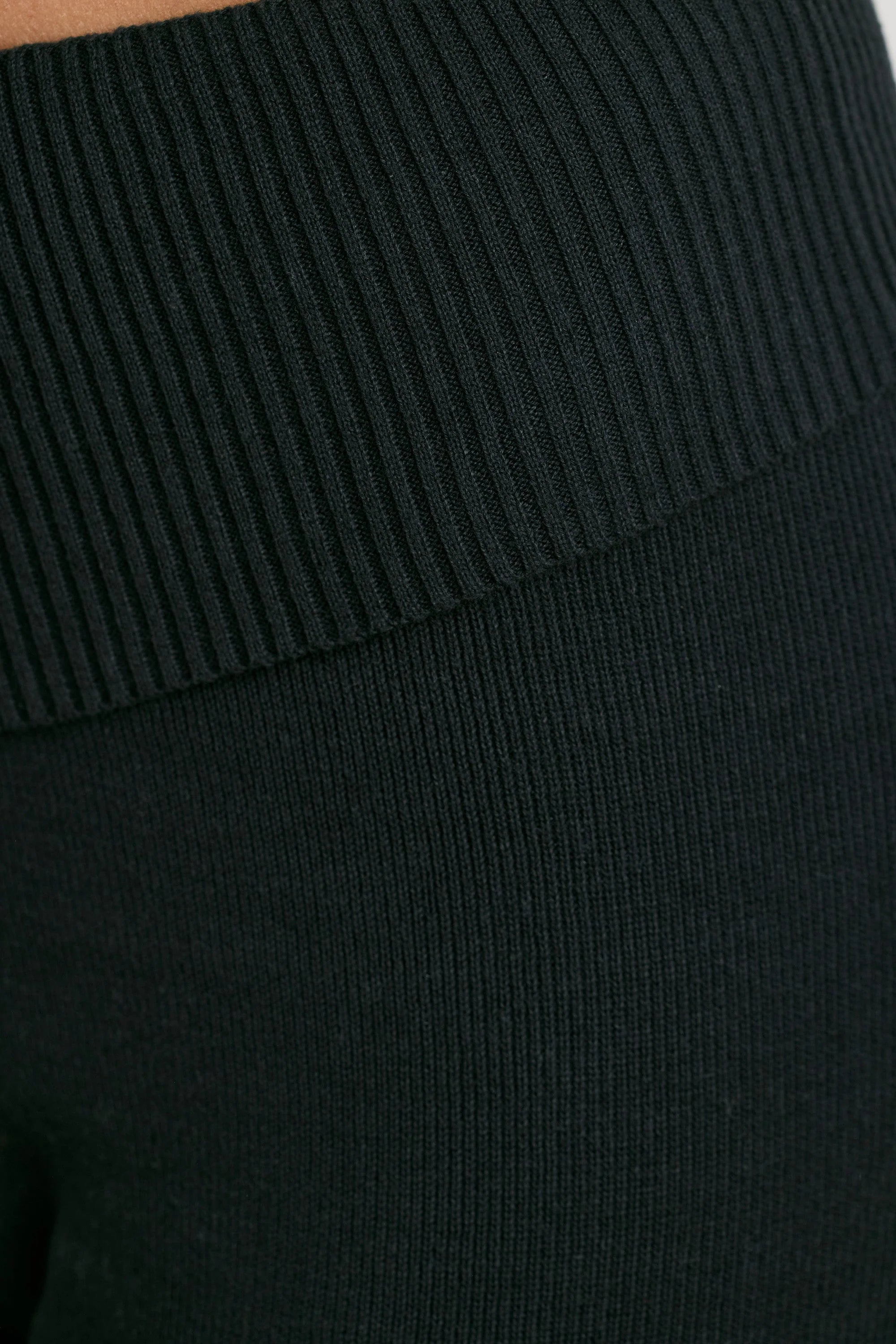 Chunky Knit Foldover Kick Flare Trousers in Black