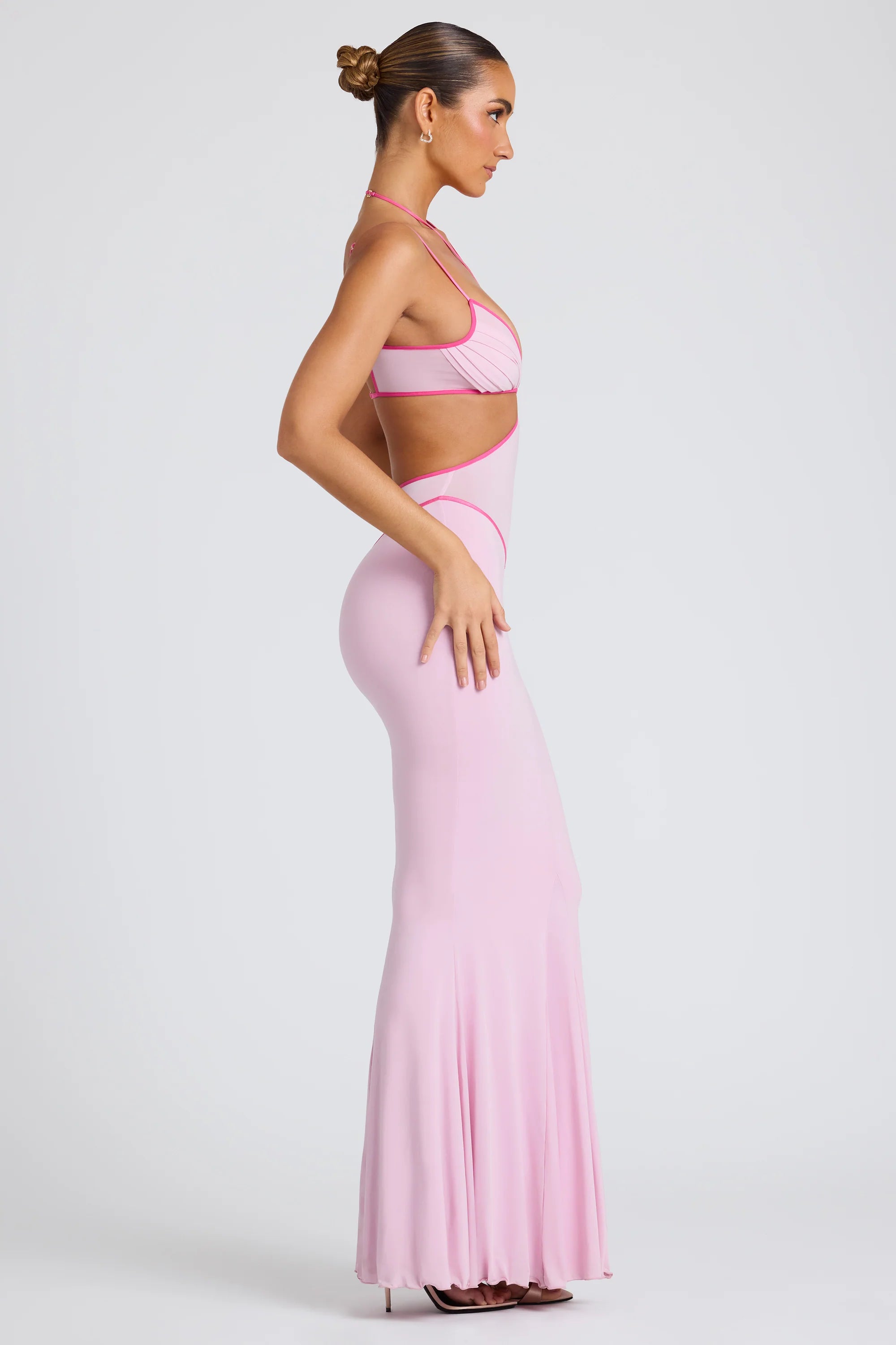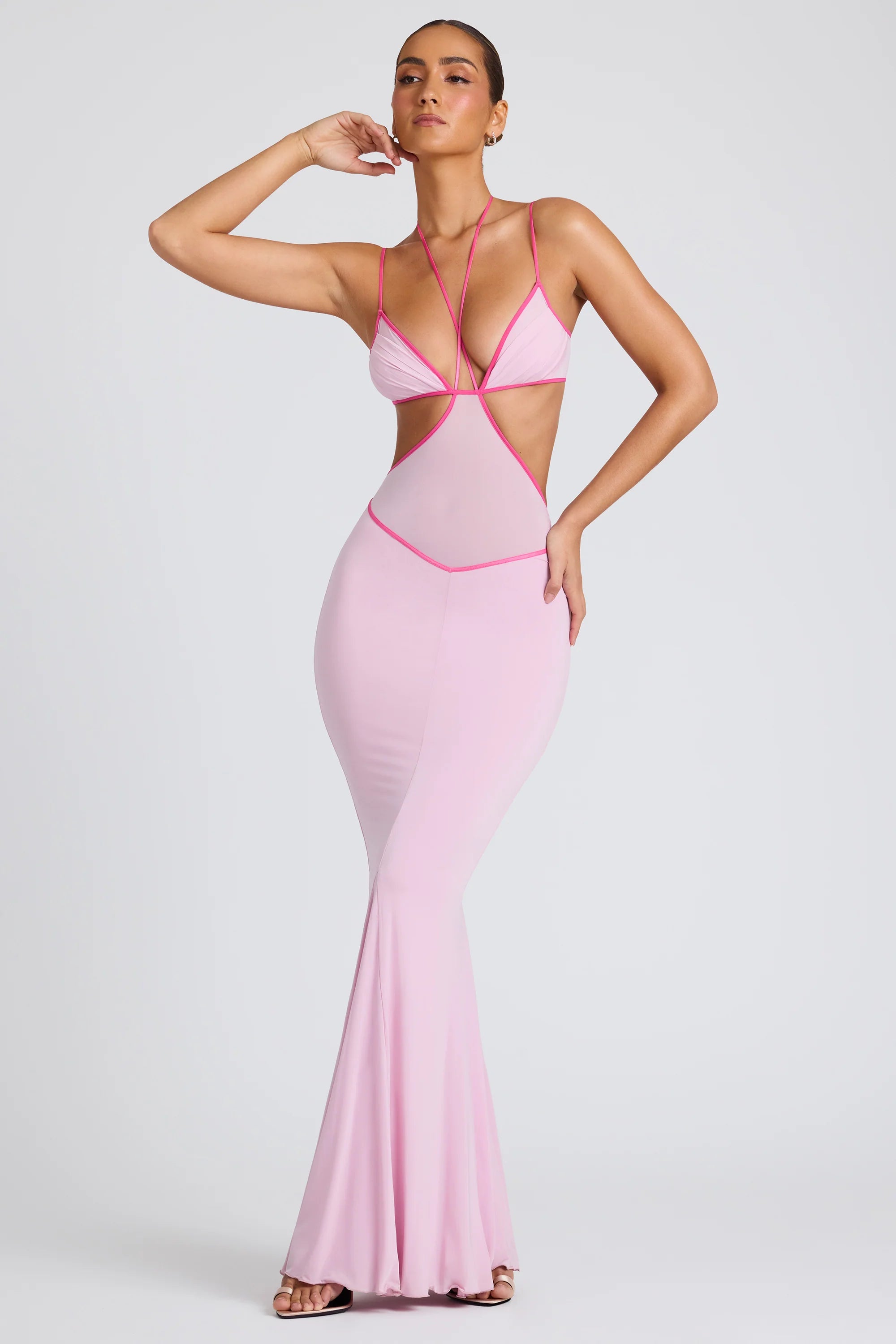 Contrast Binding Cut Out Evening Gown in Soft Pink