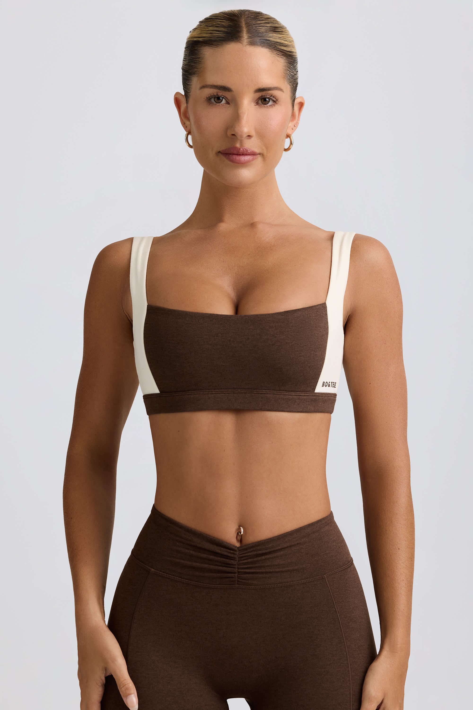 Cute contrast. Crafted from our premium marl jersey with a soft-touch feel and a touch of stretch for comfort, this low-impact sports bra is perfect for pilates-to-coffee mornings. It features a universally flattering square neckline, wide contrast straps for extra support and a unique open-back design.