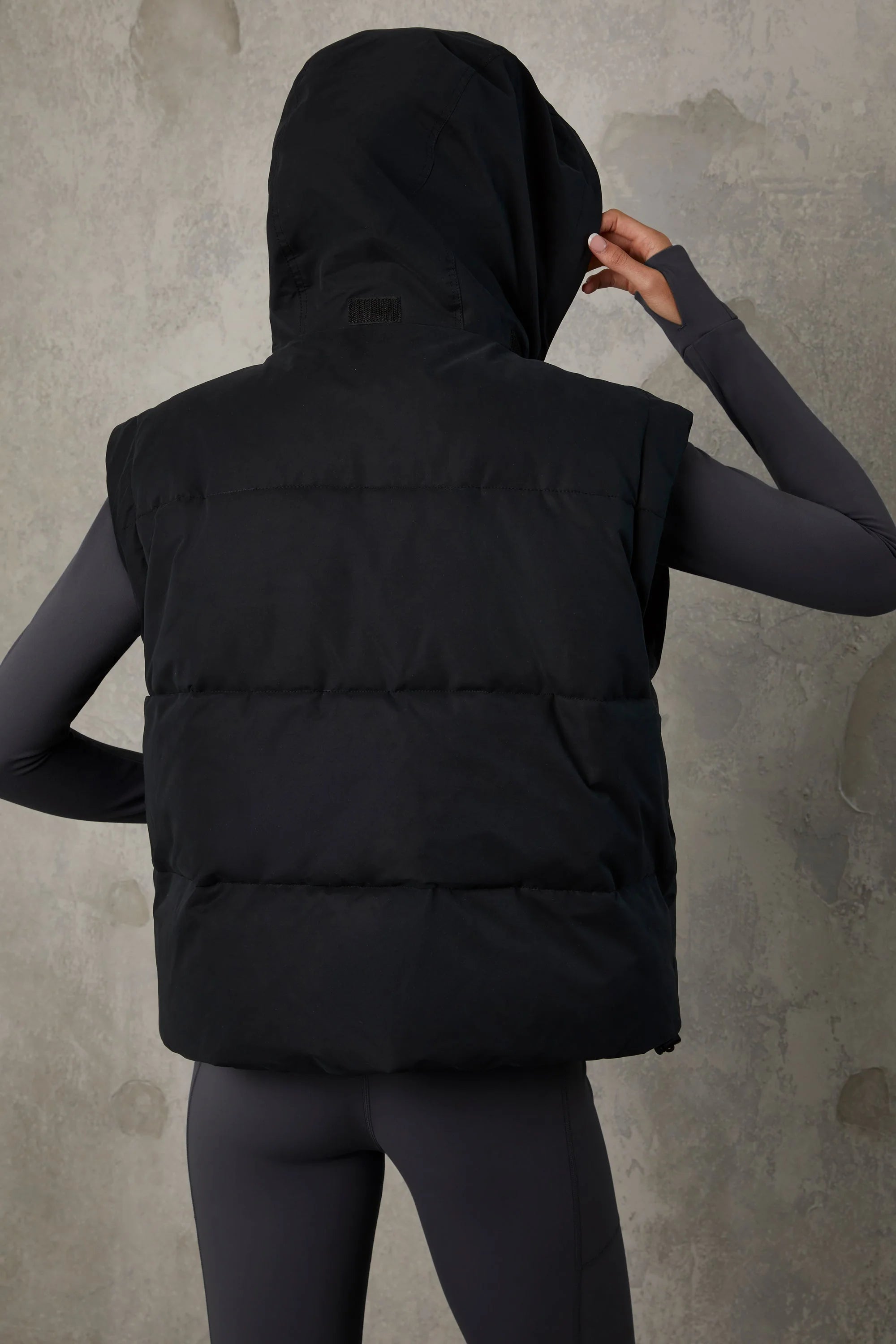 Cropped Puffer Jacket with Detachable Sleeves in Black