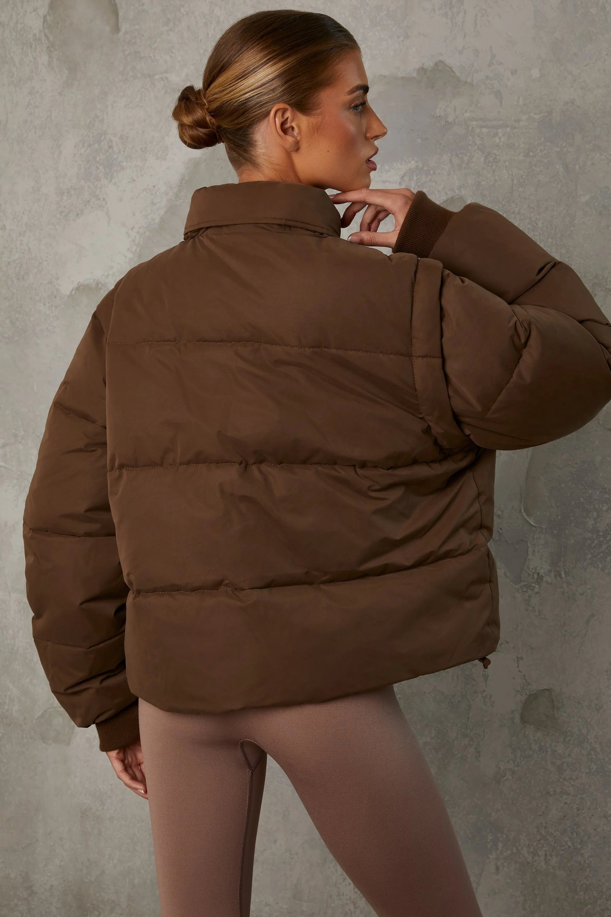 Cropped Puffer Jacket with Detachable Sleeves in Cocoa Brown