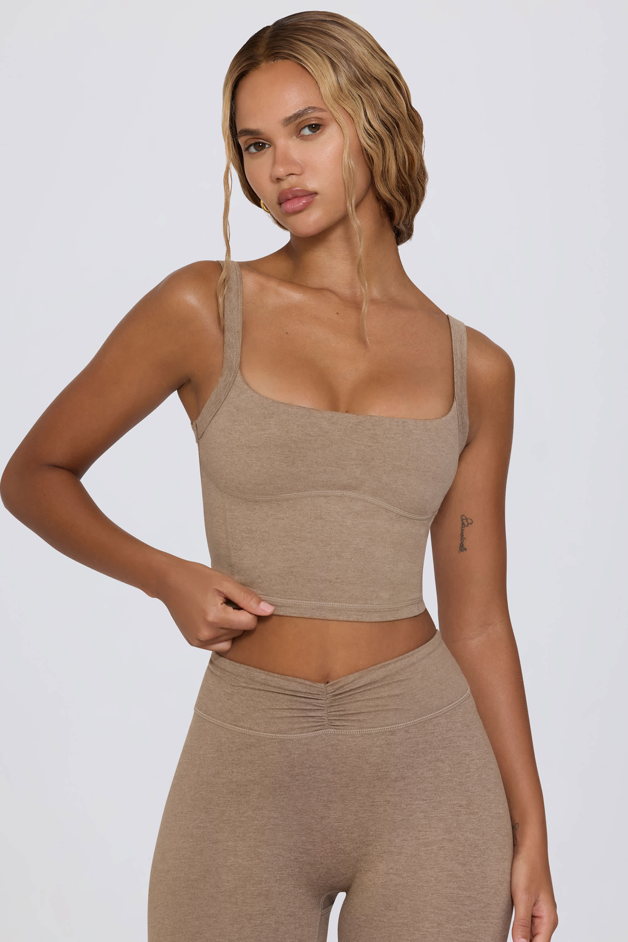 The perfect choice from pilates to coffee dates, this cropped tank top is crafted from our premium soft marl jersey fabric with a lightly brushed feel. Cut to a fitted silhouette with underbust seams for enhanced shaping, it’s framed with a square neck, low scoop back and slender fixed straps.