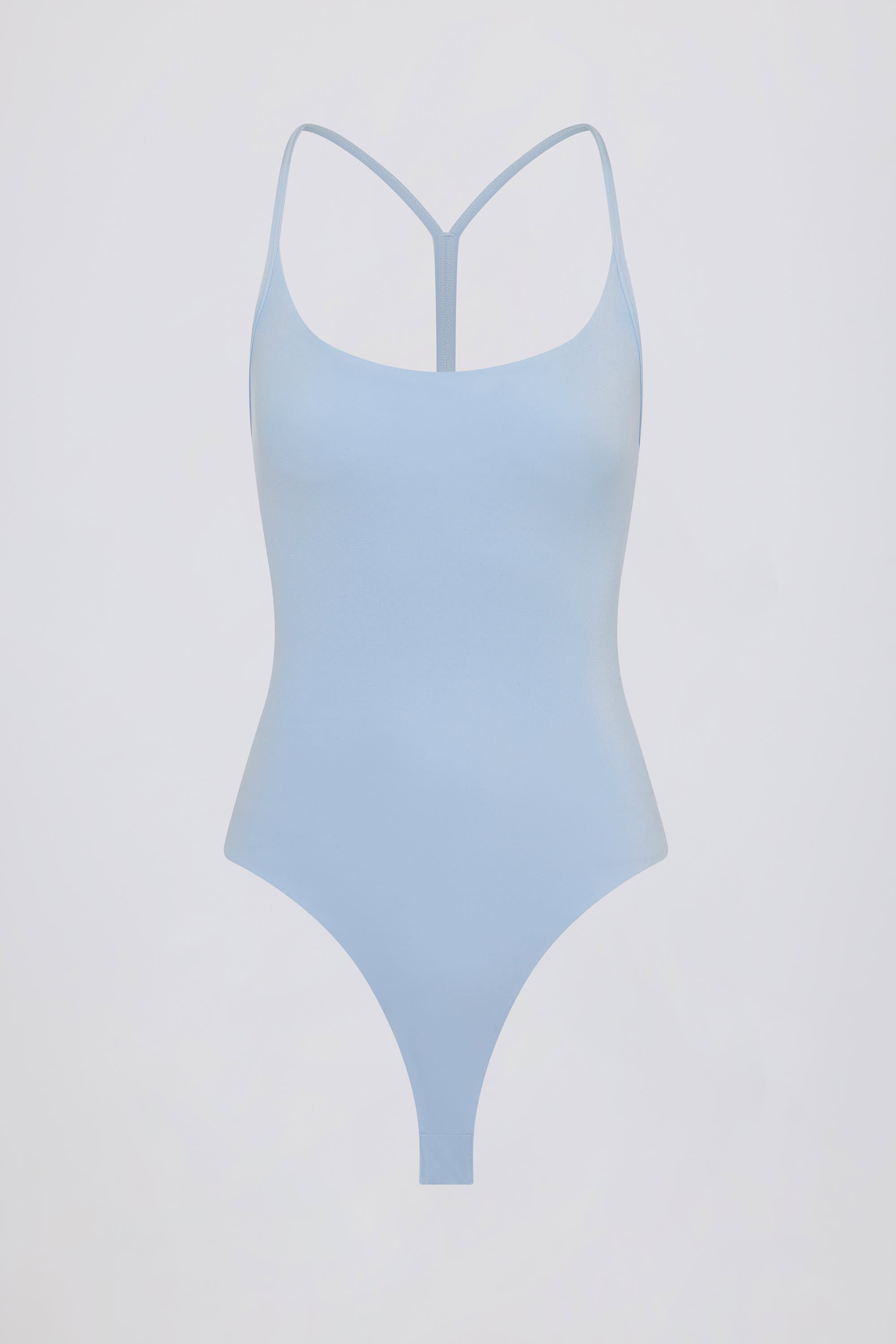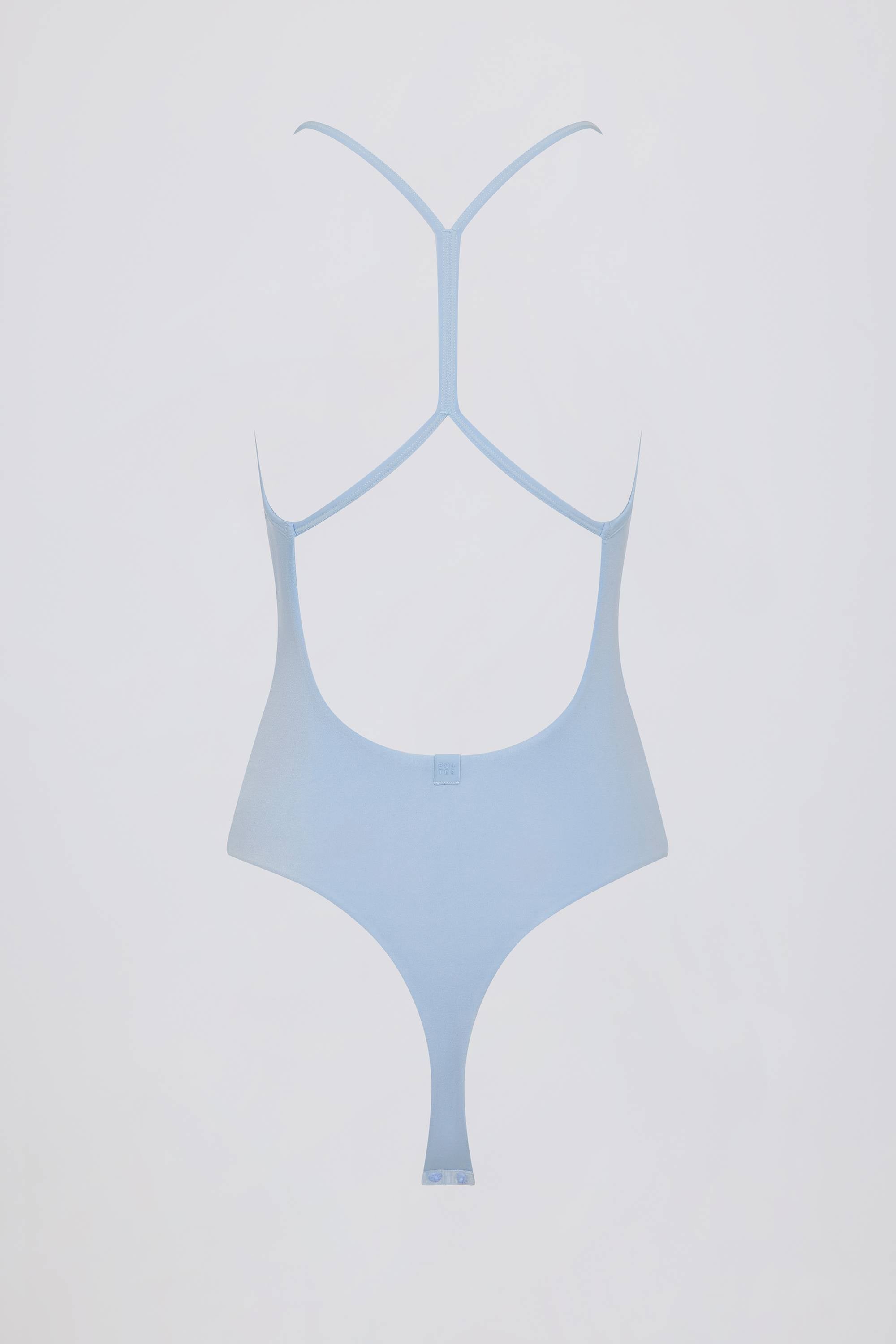 Styling essentials. This bodysuit is designed as the perfect base for sunrise walks or warm-weather brunches, crafted from our silky soft and stretchy jersey for a sleek, smoothing and figure-hugging fit. Framed with a universally flattering scoop neck, it features a cut-out back with racerback straps and thong-back coverage for seamless layering under your favourite shorts or joggers.
