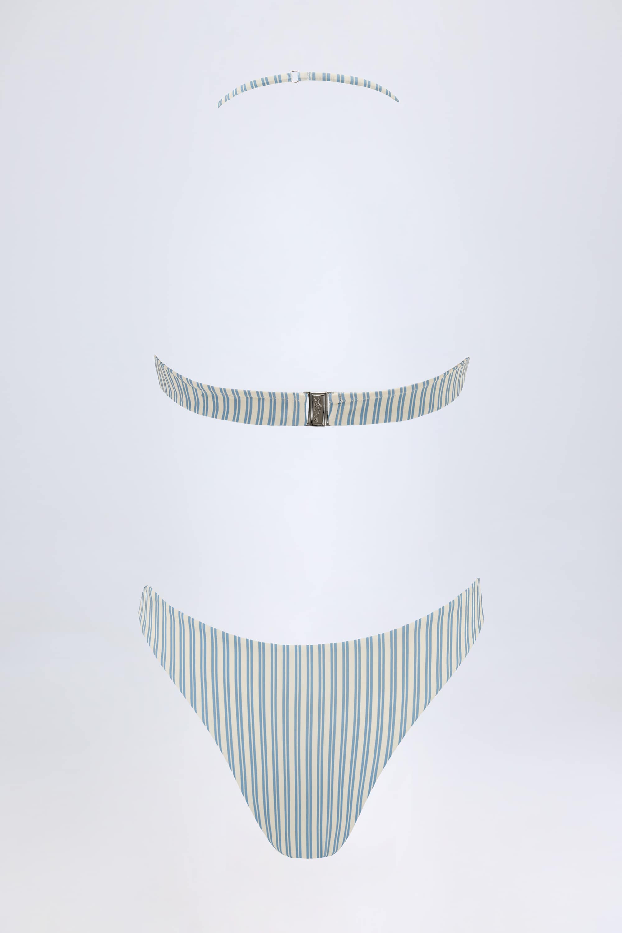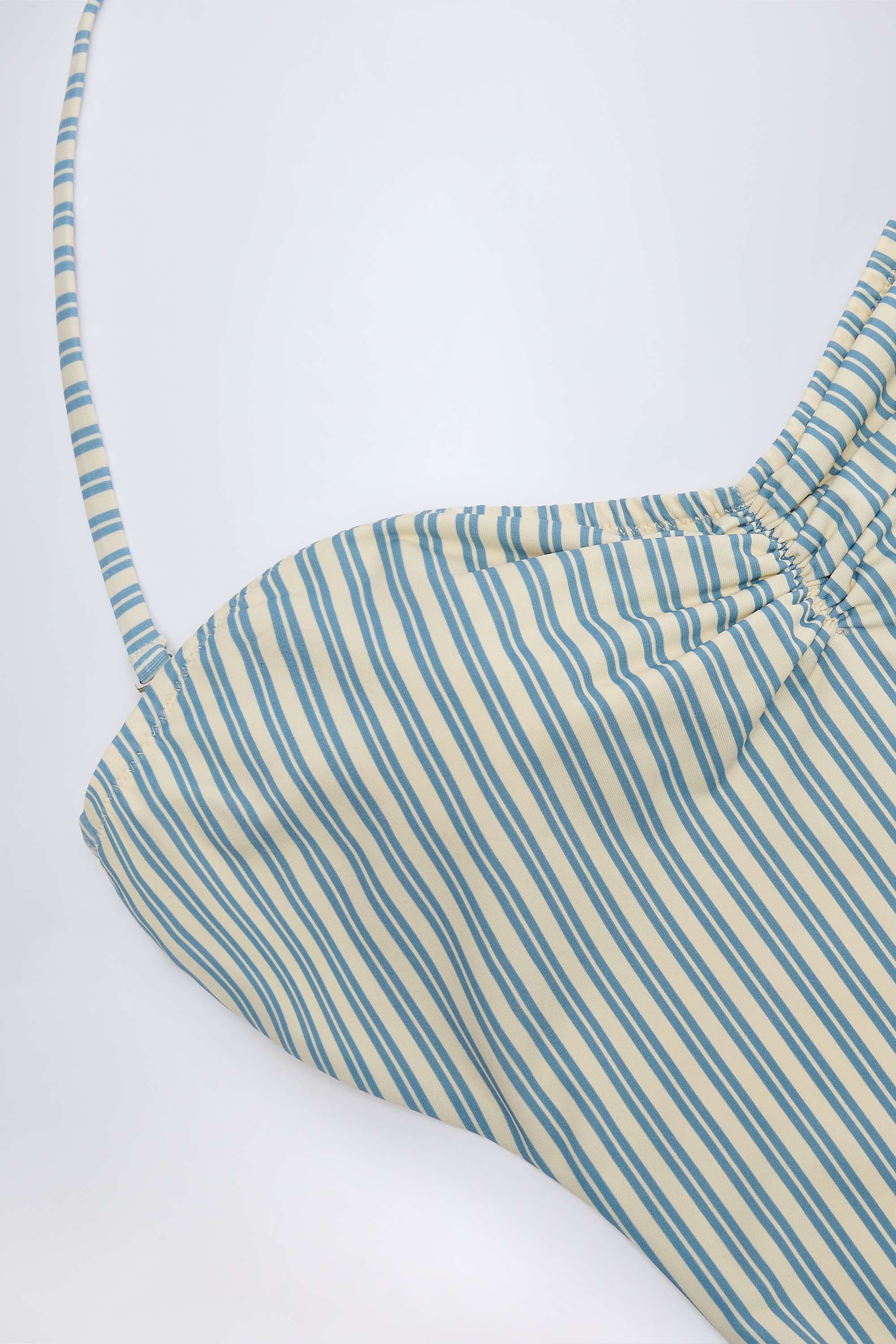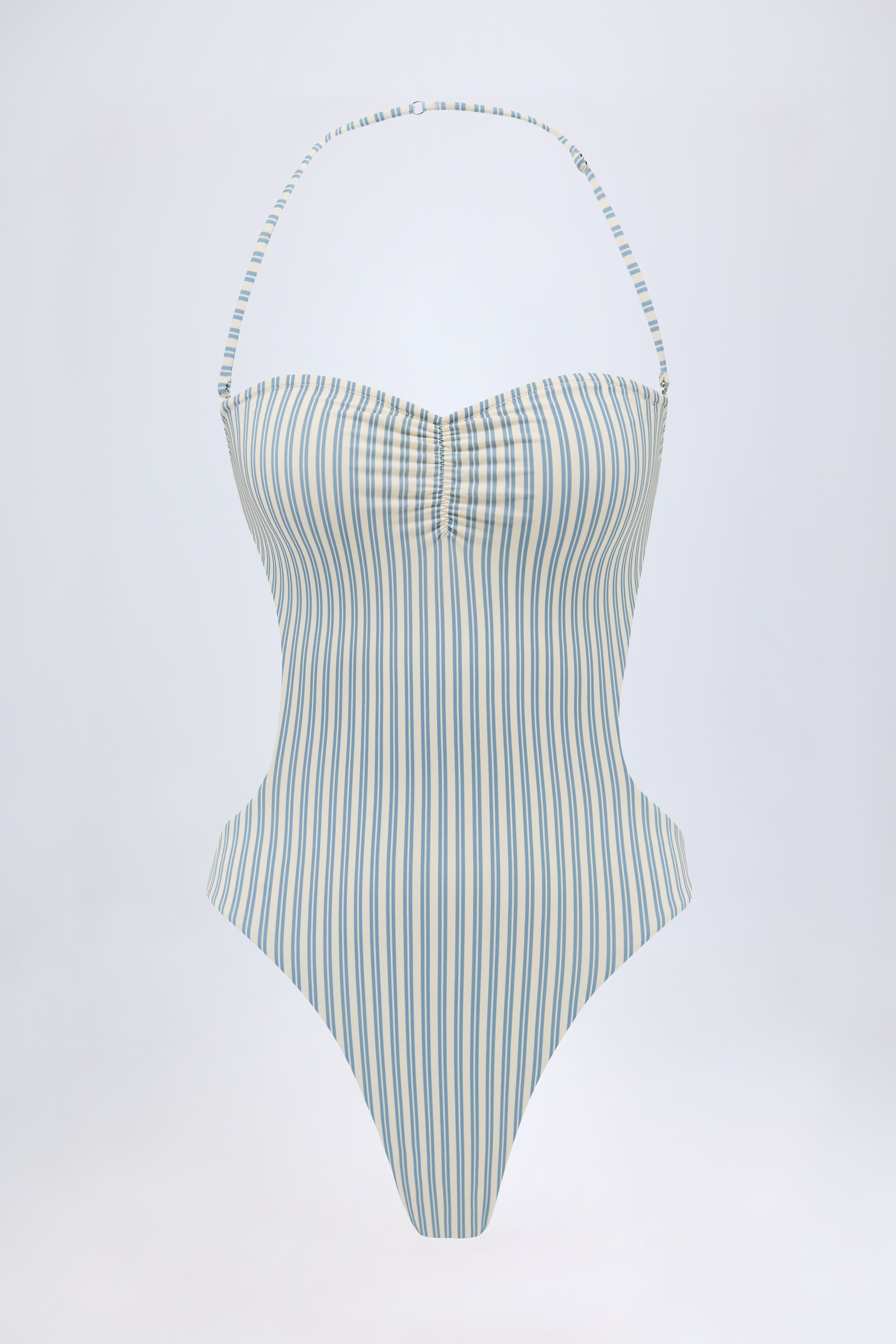 A contemporary take on classic elegance, the Biarritz swimsuit is crafted from recycled stretch-swim jersey to a high-cut silhouette inspired by retro-inspired styles. Framed with a bust-flattering ruched bandeau neckline and detachable halterneck straps for extra support, it’s punctuated with a curved side and back cut-out for a glamorous look.