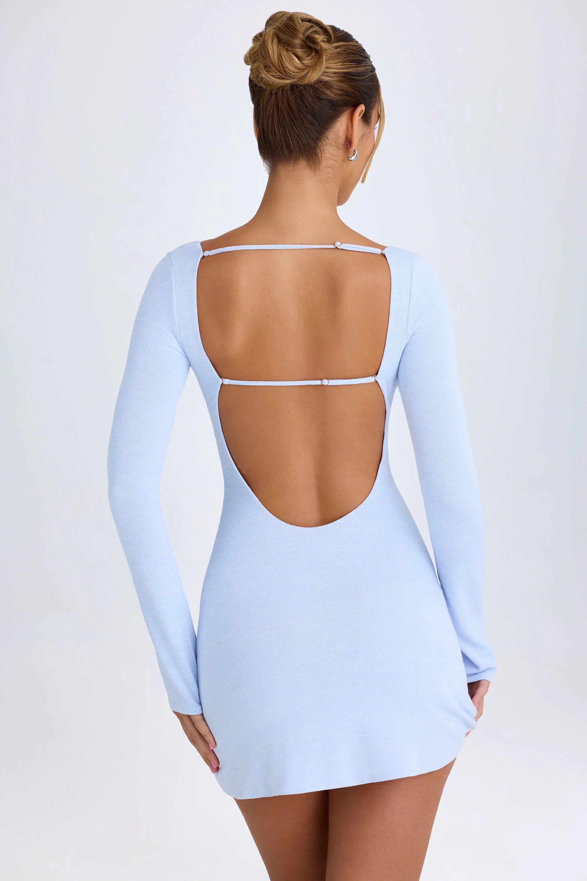 Cut-Out Long-Sleeve Mini Dress in Periwinkle Blue