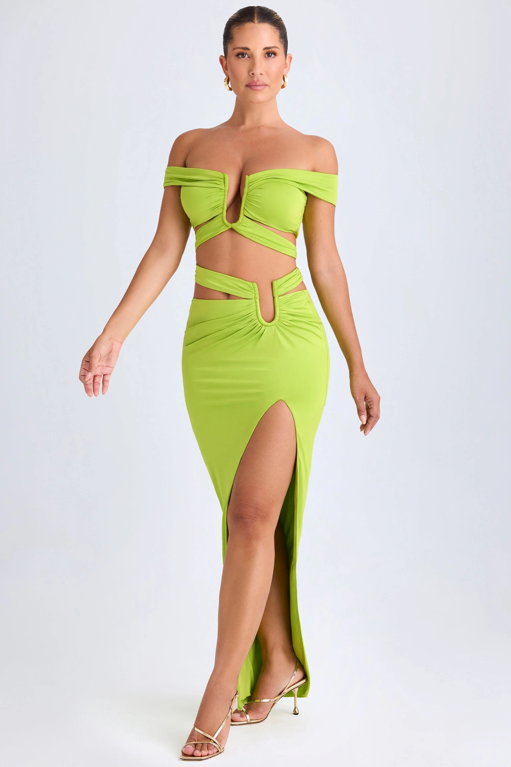 Cut-Out Off-Shoulder Crop Top in Lime Green