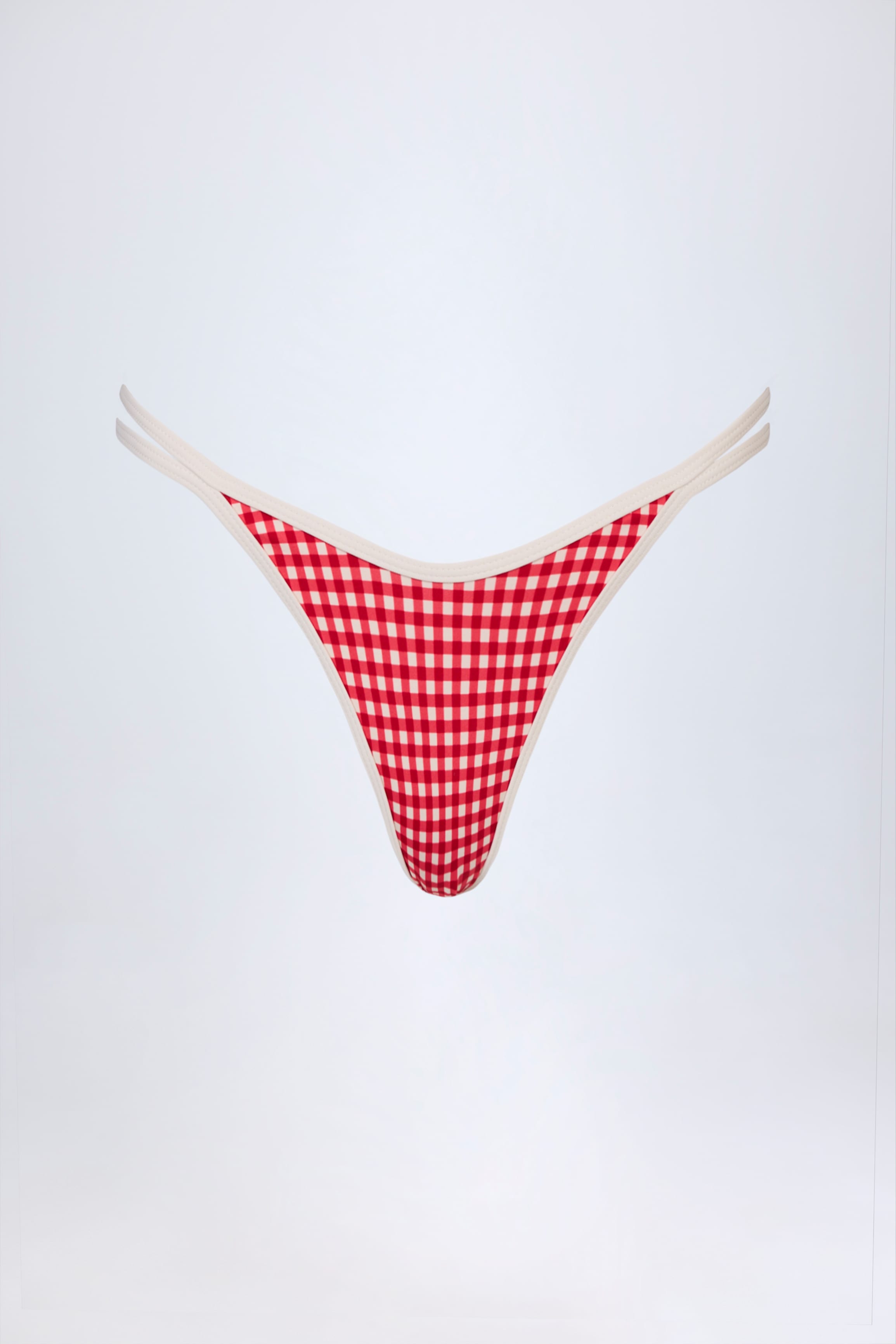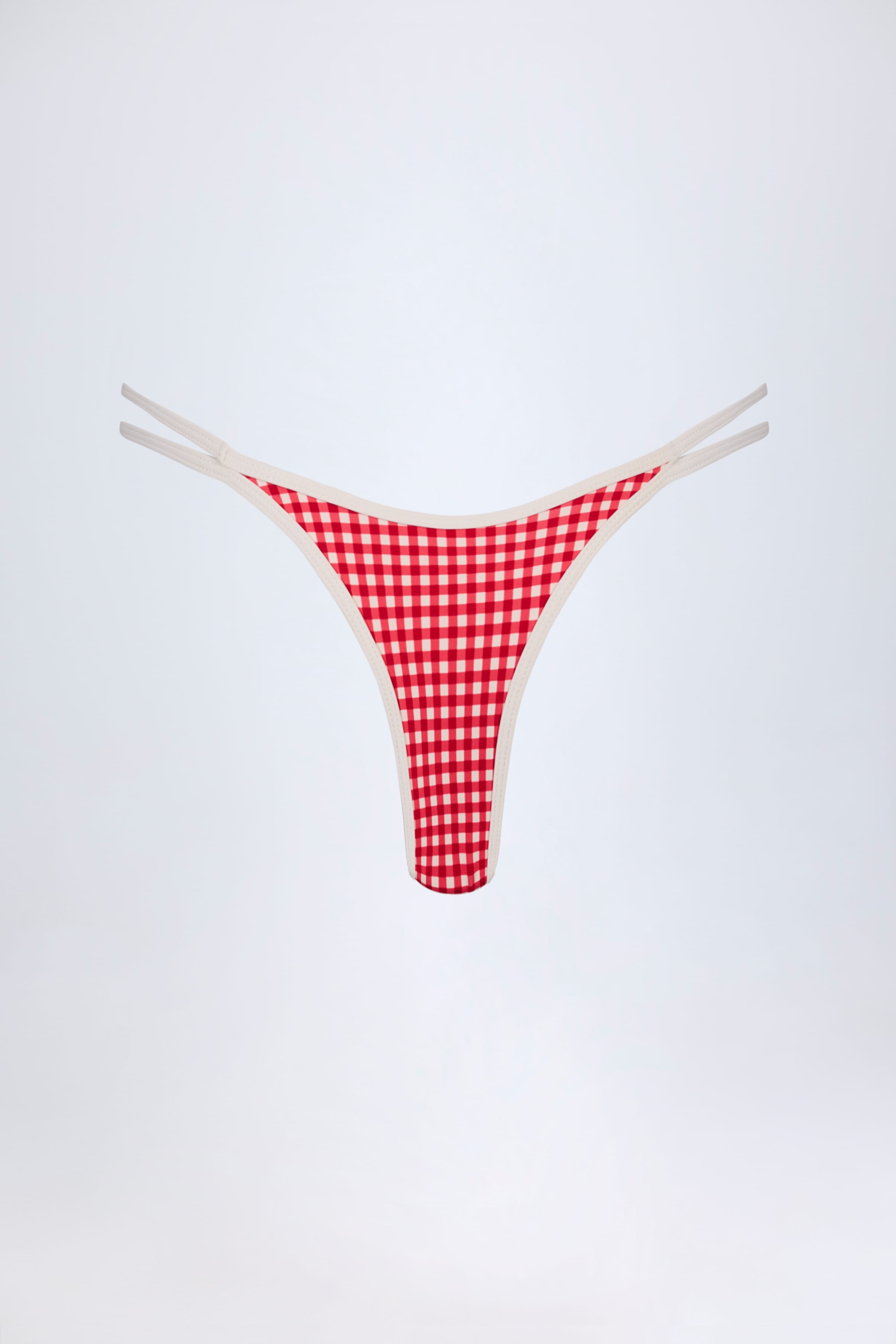 Double-Strap Cheeky Bikini Bottoms in Red Gingham
