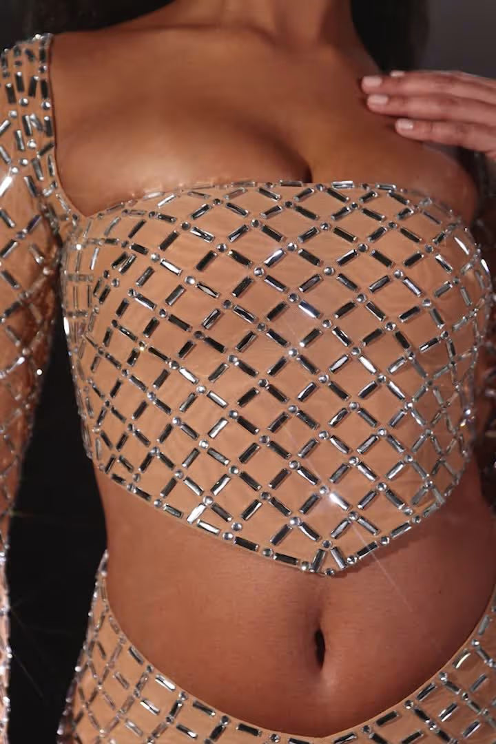 Made from premium 40D stretch mesh with a power mesh lining and all-over HOTFIX embellishment (Shell: 84% Polyamide, 16% Elastane; Lining: 84% Polyamide, 16% Elastane). Fully lined.