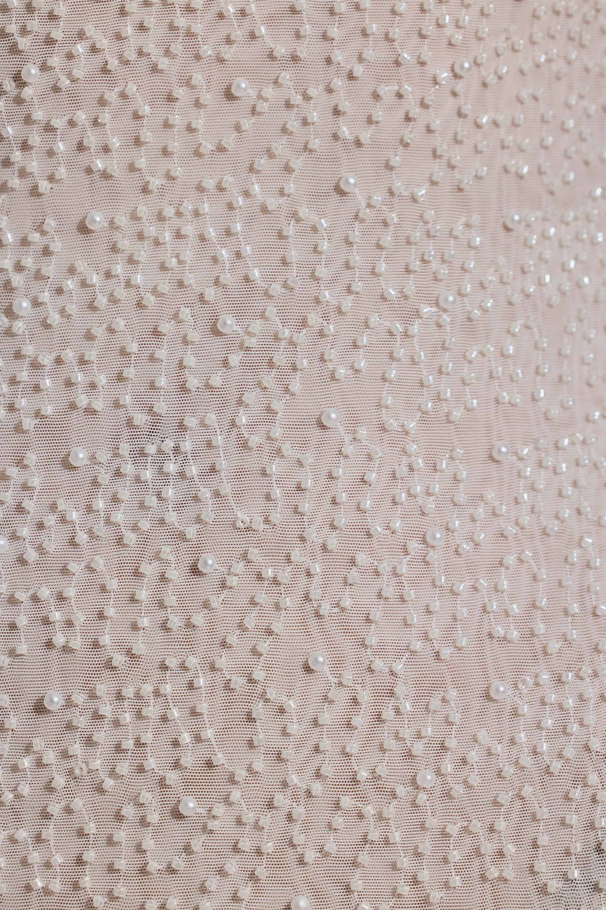 Channel effortless glamour with the Duhamel maxi dress. An iconic silhouette, it’s crafted from our premium dual-layered 20 mesh fabric with a slightly sheer finish that hugs every curve beautifully. Framed with an asymmetric neckline, it’s cut to a fishtail silhouette with a centre back split, low open back and all-over delicate hand-embellished pearls and beads for a statement look.