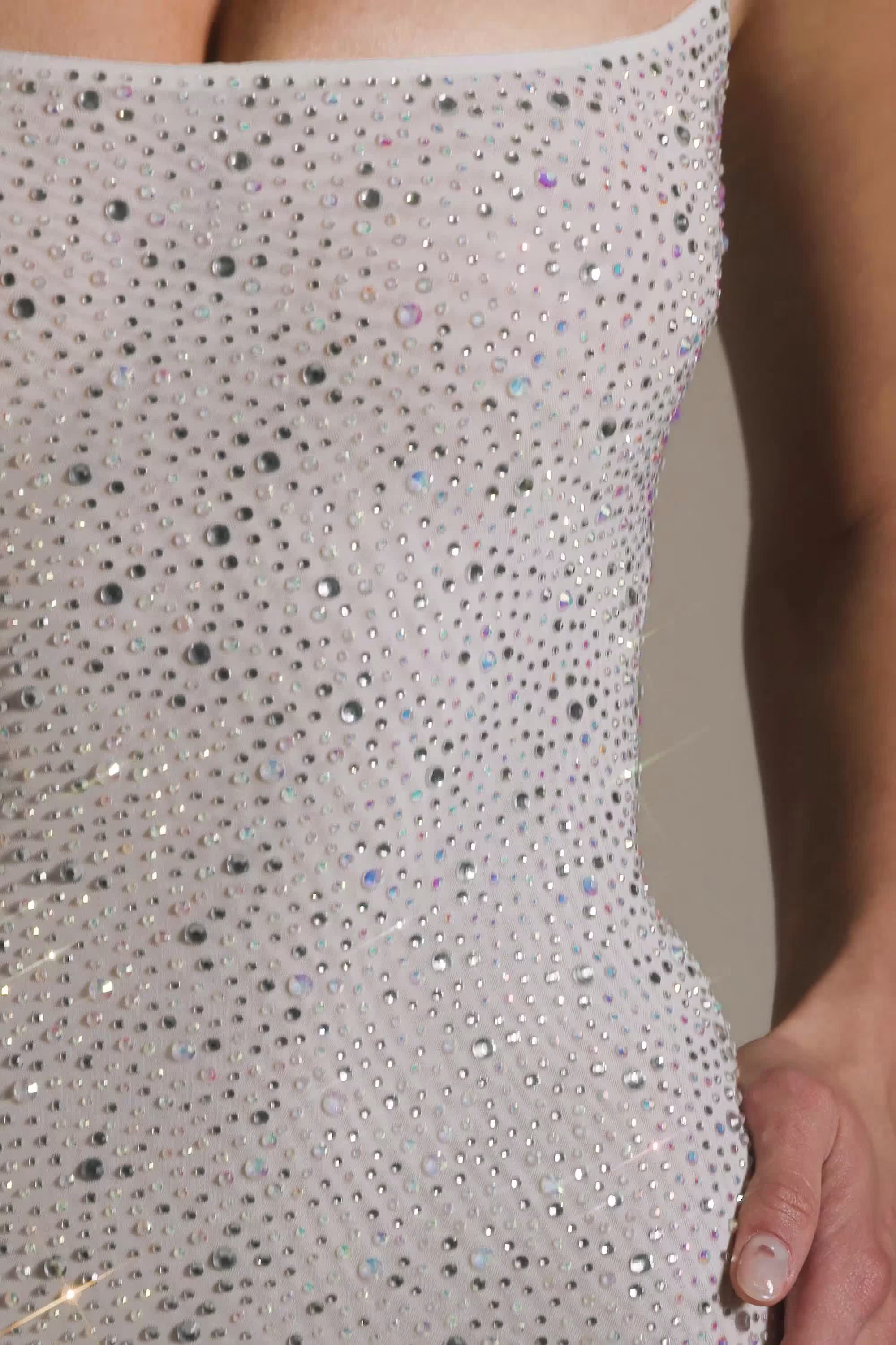 Made for glittering evenings. The perfect complement to special occasions, the Aellin mini dress is rendered in three standout hues and adorned with tonal HOTFIX embellishments that sparkle endlessly. It’s crafted from premium 20D stretch mesh to a figure-hugging bodycon silhouette and framed with slender adjustable shoulder straps for your perfect fit.
