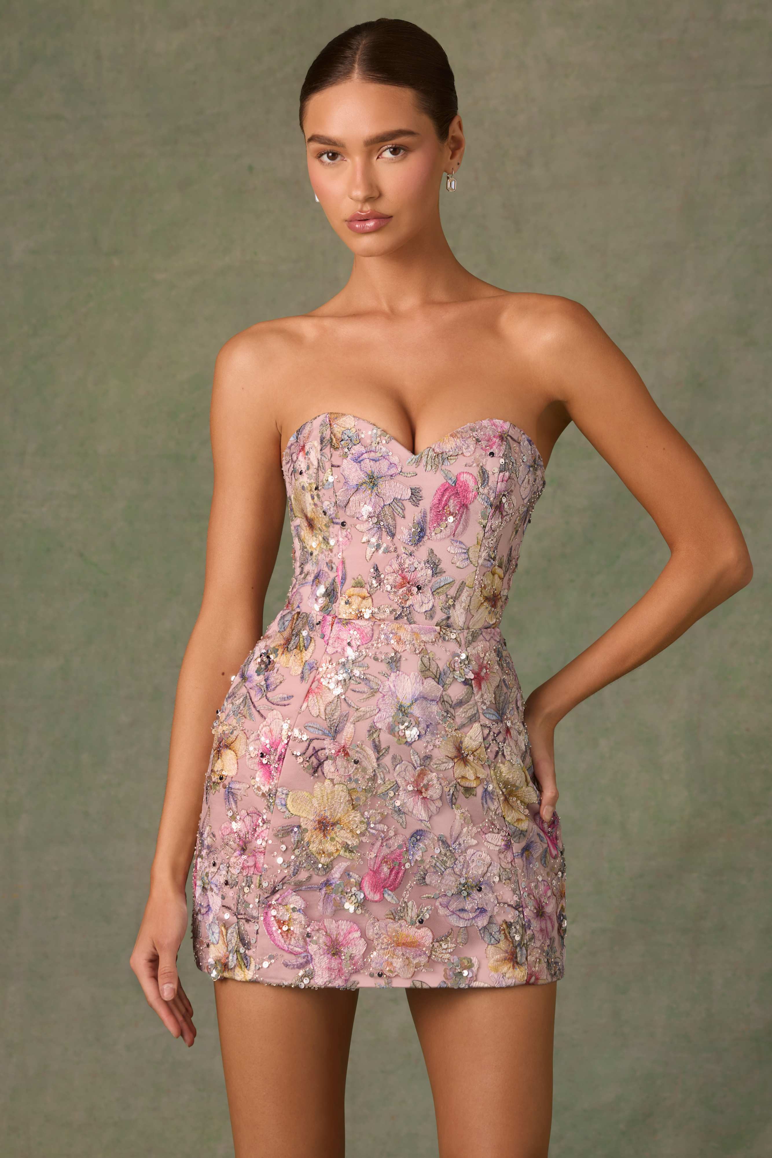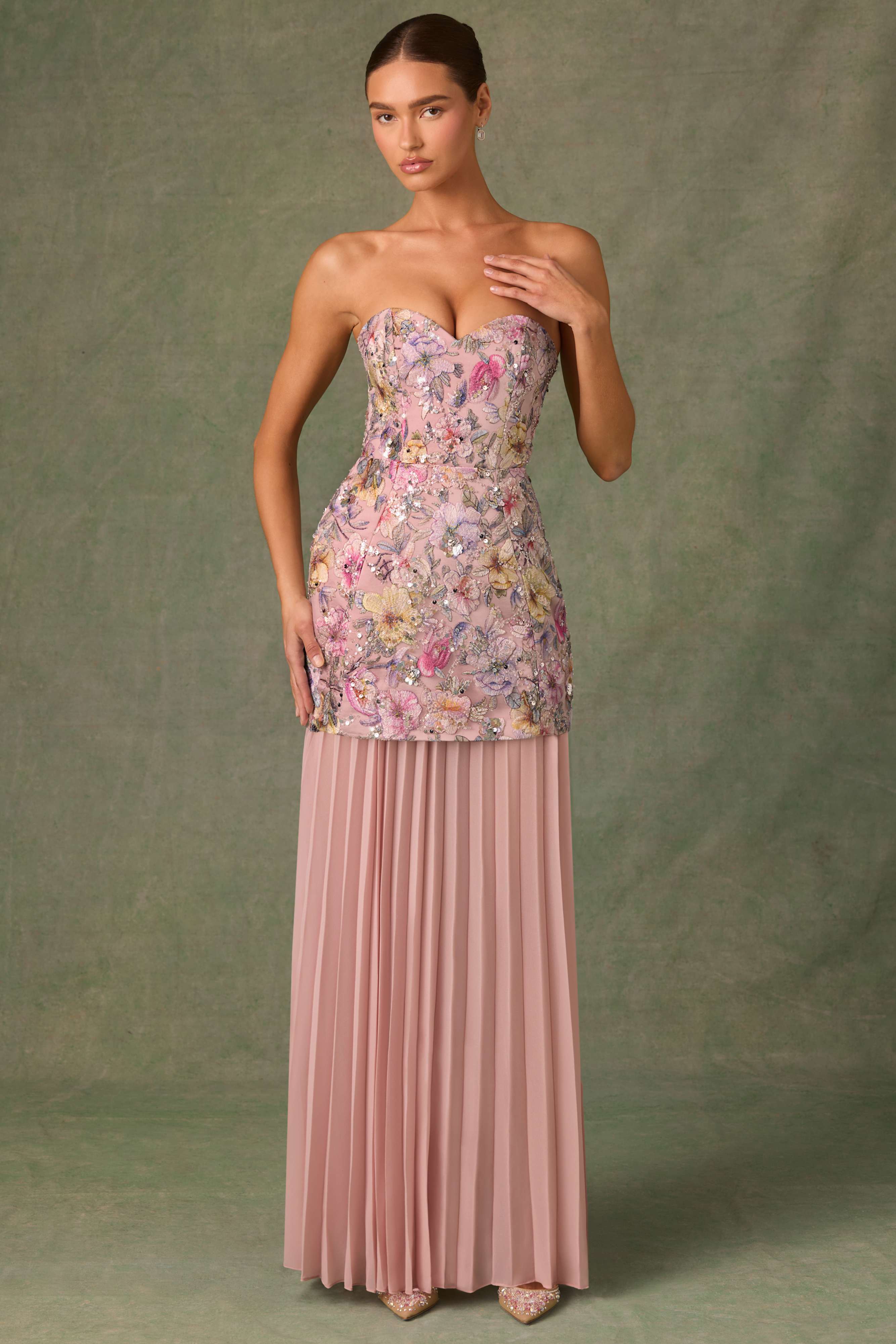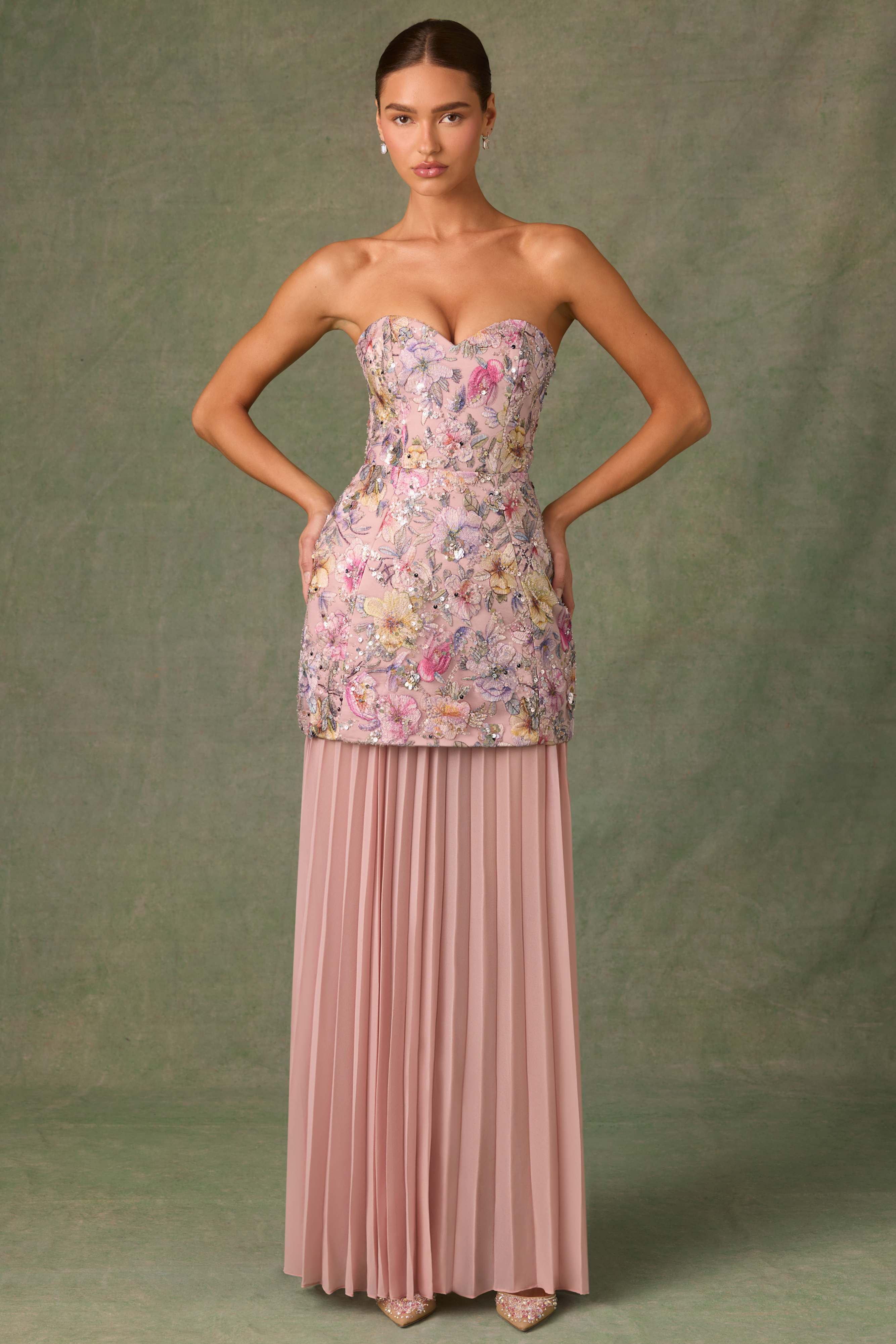 Pushing the boundaries of design, Galia is our newest convertible style that transforms from a full-length gown to a structured mini for two head-turning looks in one. It features an A-line overlay crafted from premium mesh fabric, lined with satin, and topped with custom floral appliqués, brought to life with perfectly placed sequin embellishments. It’s complete with a detachable pleated chiffon skirt for customisable styling.