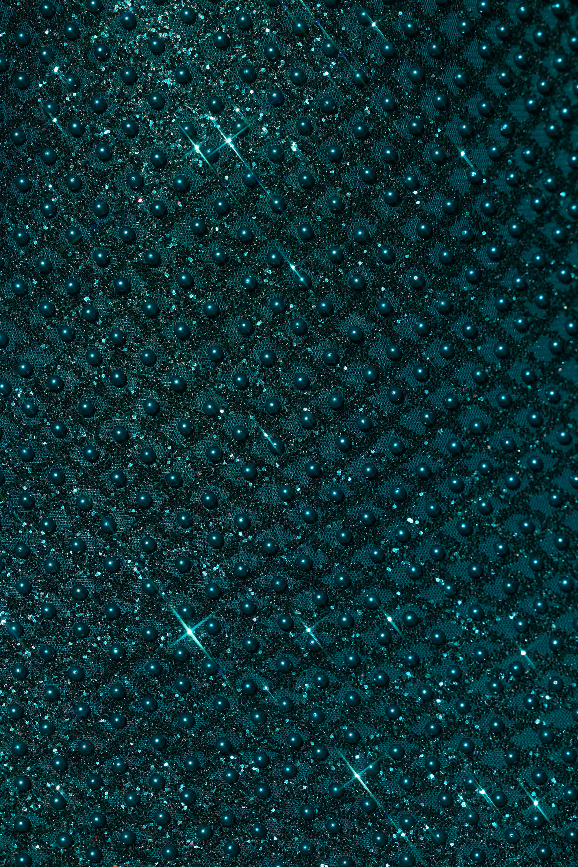Made from premium glittered mesh with a stretch jersey and mesh lining (Shell: 100% Polyester, Lining1: 95% Polyester, 5% Elastane; Lining2: 82% Polyester, 18% Elastane). Fully lined.