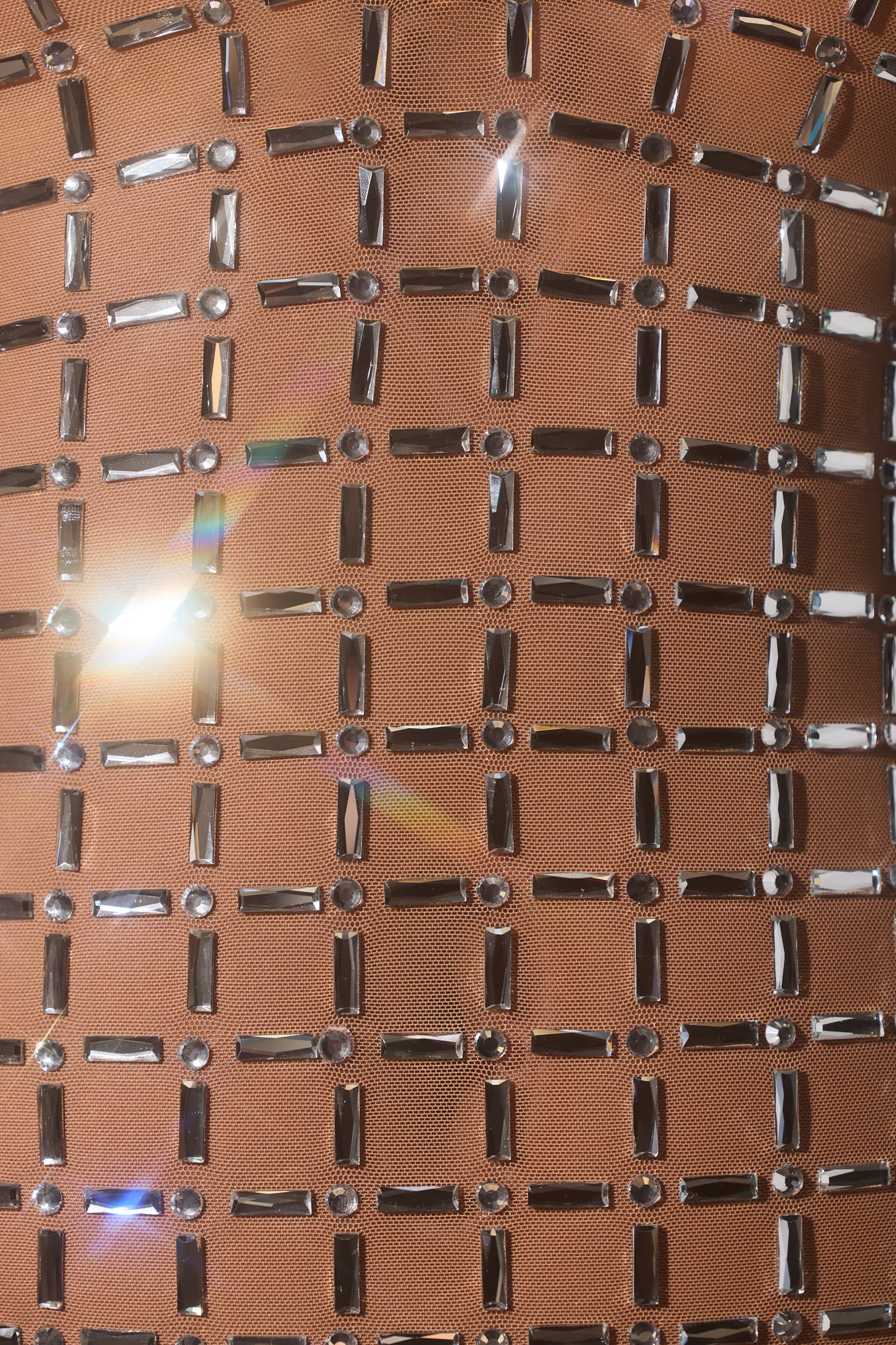 Made from premium 40D stretch mesh with all-over HOTFIX embellishment (Shell: 84% Polyamide, 16% Elastane). Unlined.