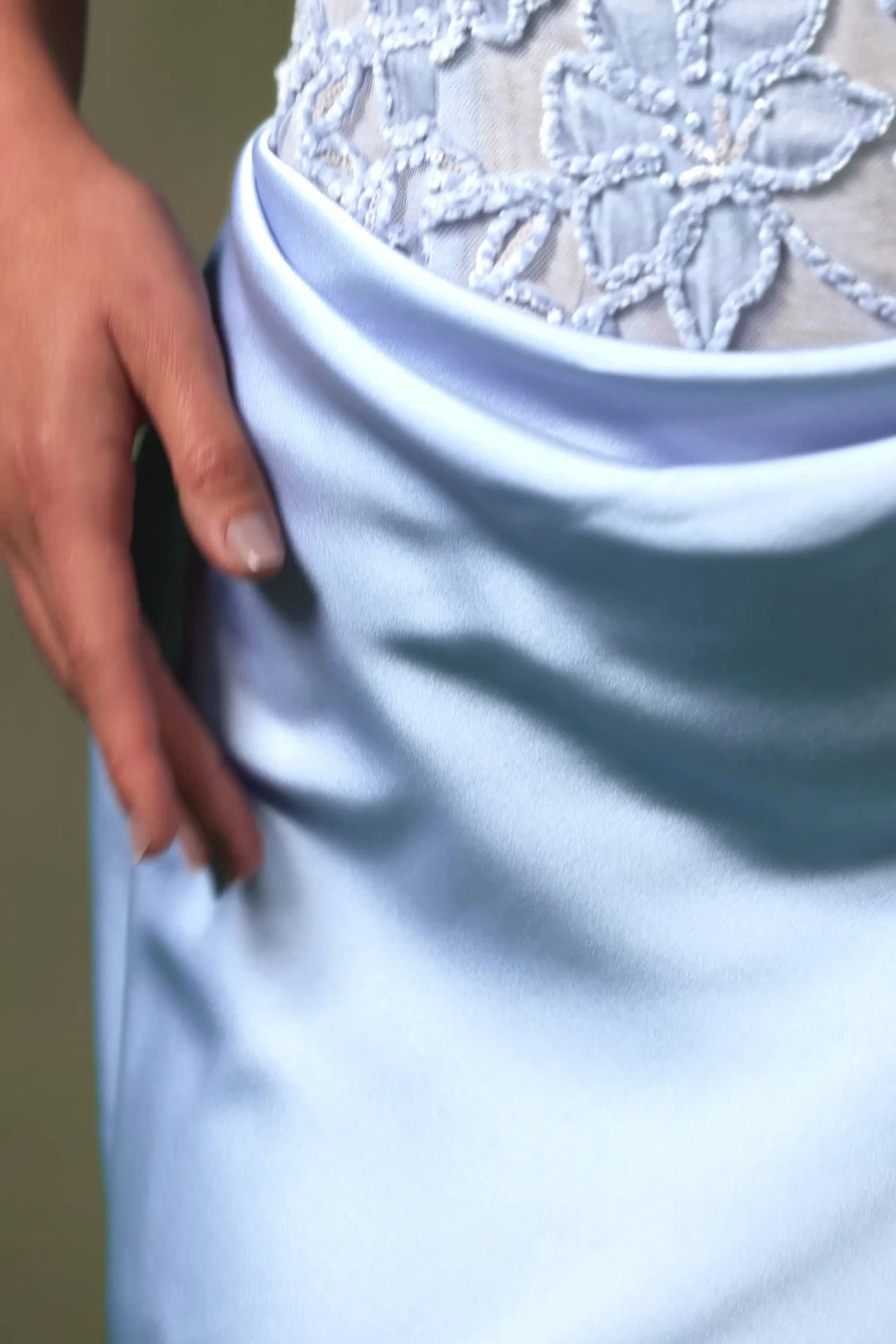 Embellished Draped Strapless A-Line Mini Dress in Sky Blue