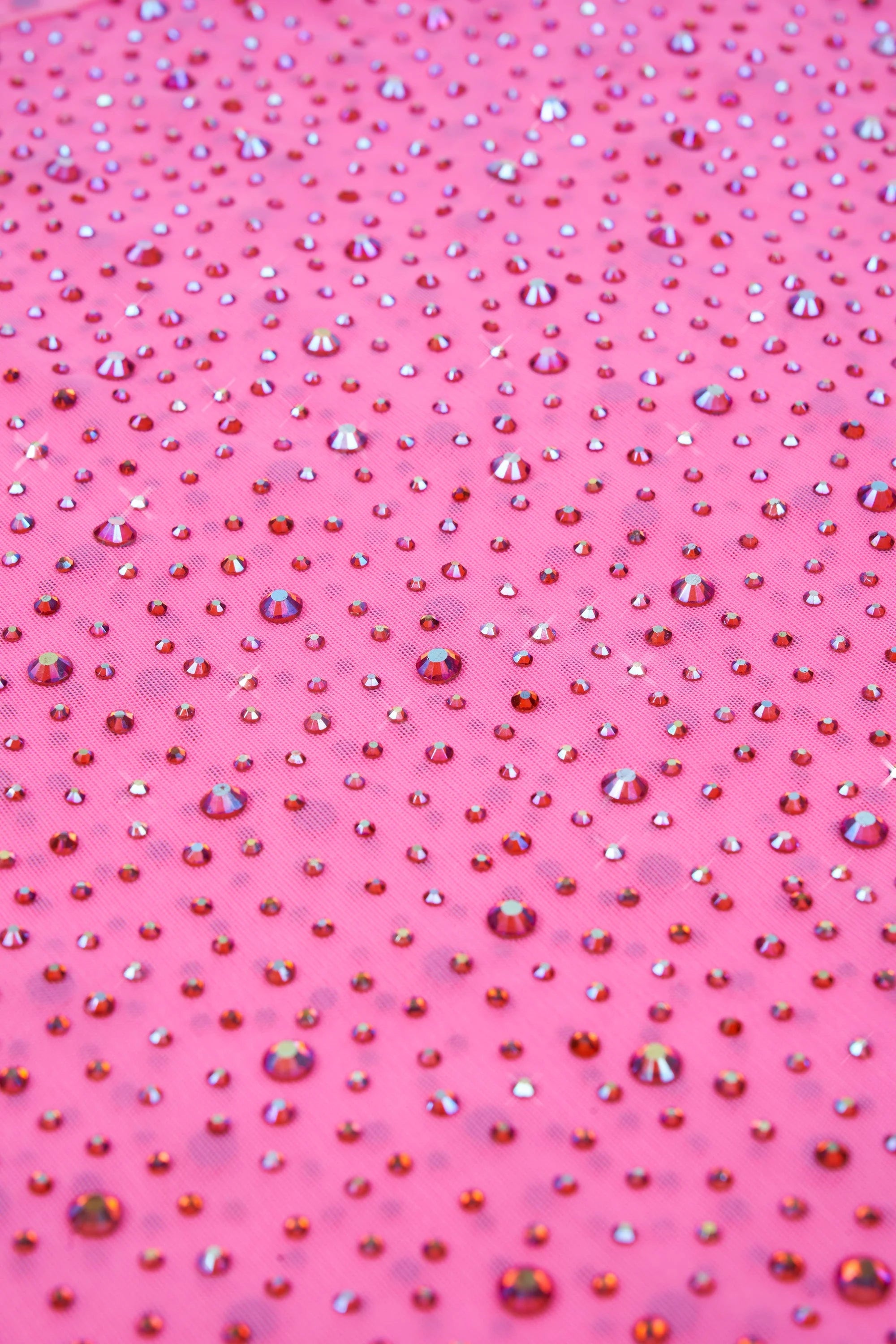 Made from dual-layered 20D mesh fabric with rhinestone embellishment (85% Polyester, 15% Elastane).