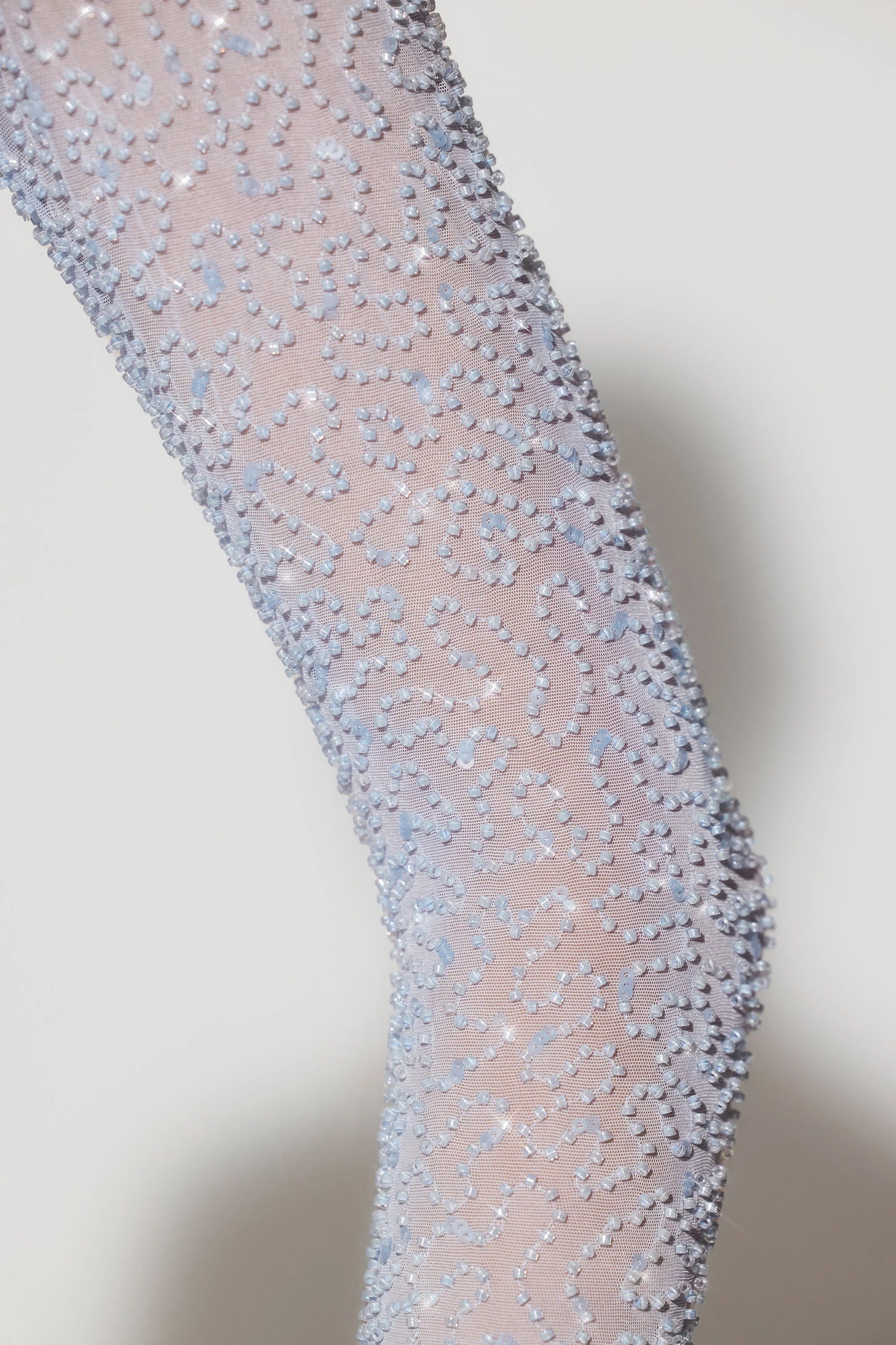 Dual layered mesh fabric with fully seeded embellishment throughout (Shell: 84% Polyester, 16% Elastane, Lining: 95% Polyester, 5% Elastane). Fully lined. Please read the wash instructions.