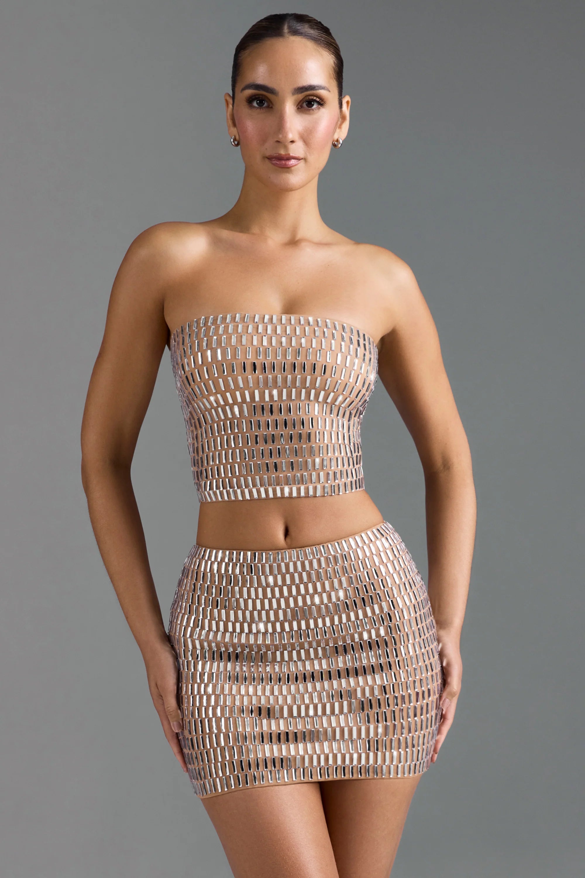 Made for commanding attention. Ideal for evening plans, the Adaia skirt is crafted from premium 20D mesh with a single-layer lining to a striking micro mini length. It’s cut for a low-rise fit and adorned with scores of sparkling HOTFIX embellishments that are sure to turn heads.