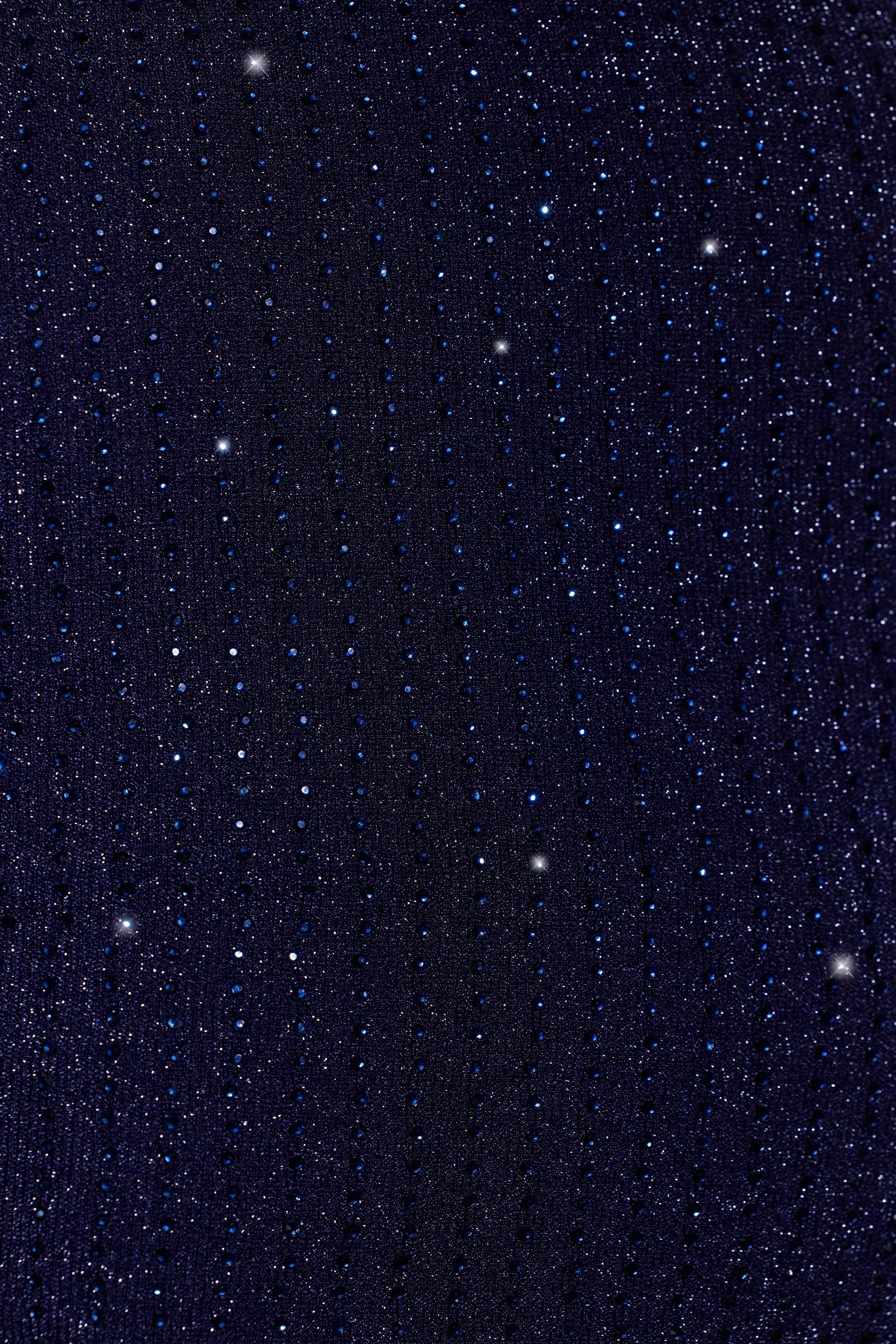 Stretch jersey fabric with metallic fibres and delicate hotfix embellishment throughout (Shell: 50% Polyamide, 45% Metallic Fibres, 5% Elastane, Lining: 85% Polyester, 15% Elastane). Fully lined with lightweight and stretchy 20D mesh. This garment contains delicate artisanal hand embellishment and it is normal that overtime embellishment may become loose. Additional embellishment has been provided for repairs.