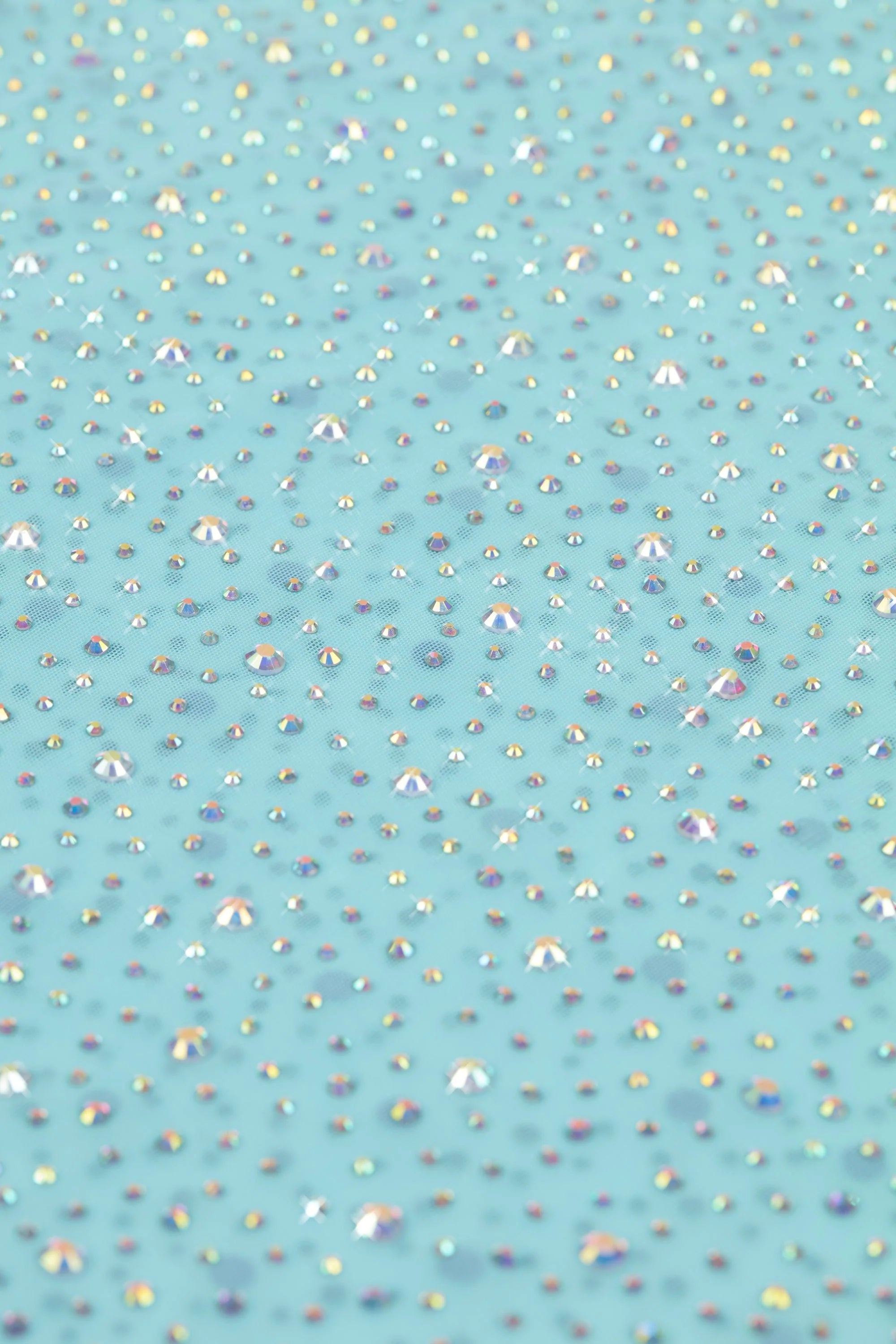 Made from dual-layered 20D mesh fabric with rhinestone embellishment (85% Polyester, 15% Elastane).