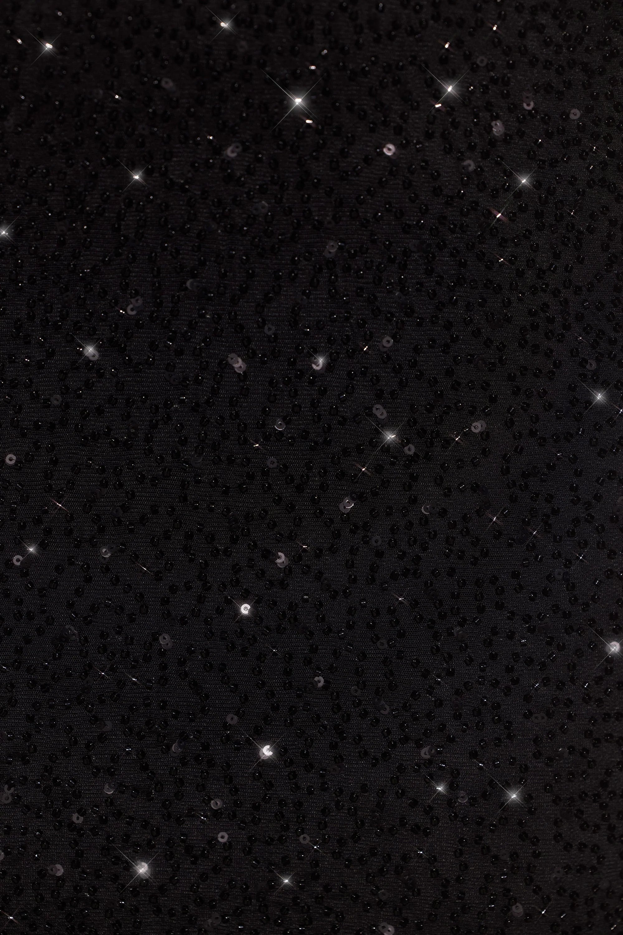 Dual layered mesh fabric with fully seeded embellishment throughout (Shell: 84% Polyester, 16% Elastane, Lining: 95% Polyester, 5% Elastane). Fully lined. Please read the wash instructions.
