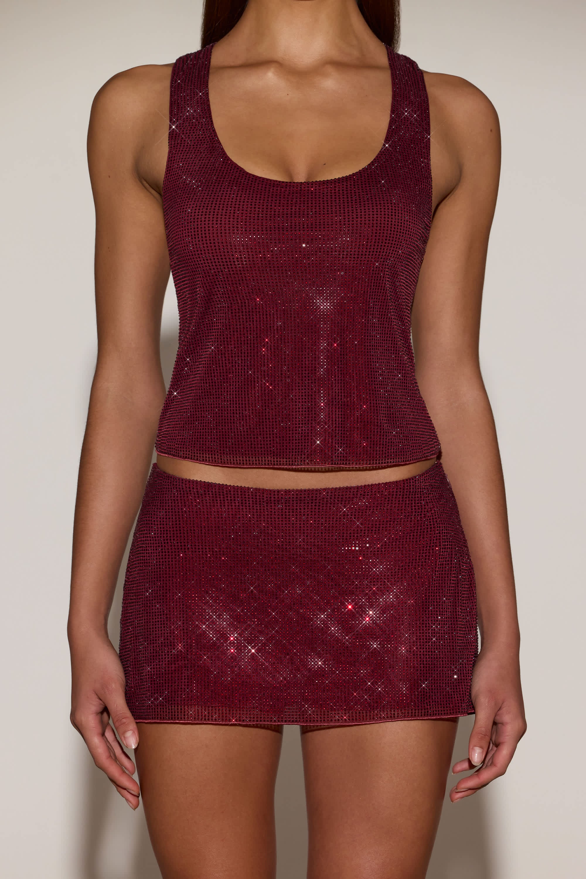 • Made from premium 20D mesh with all-over HOTFIX embellishment and a sheer mesh lining. Fully lined in self.