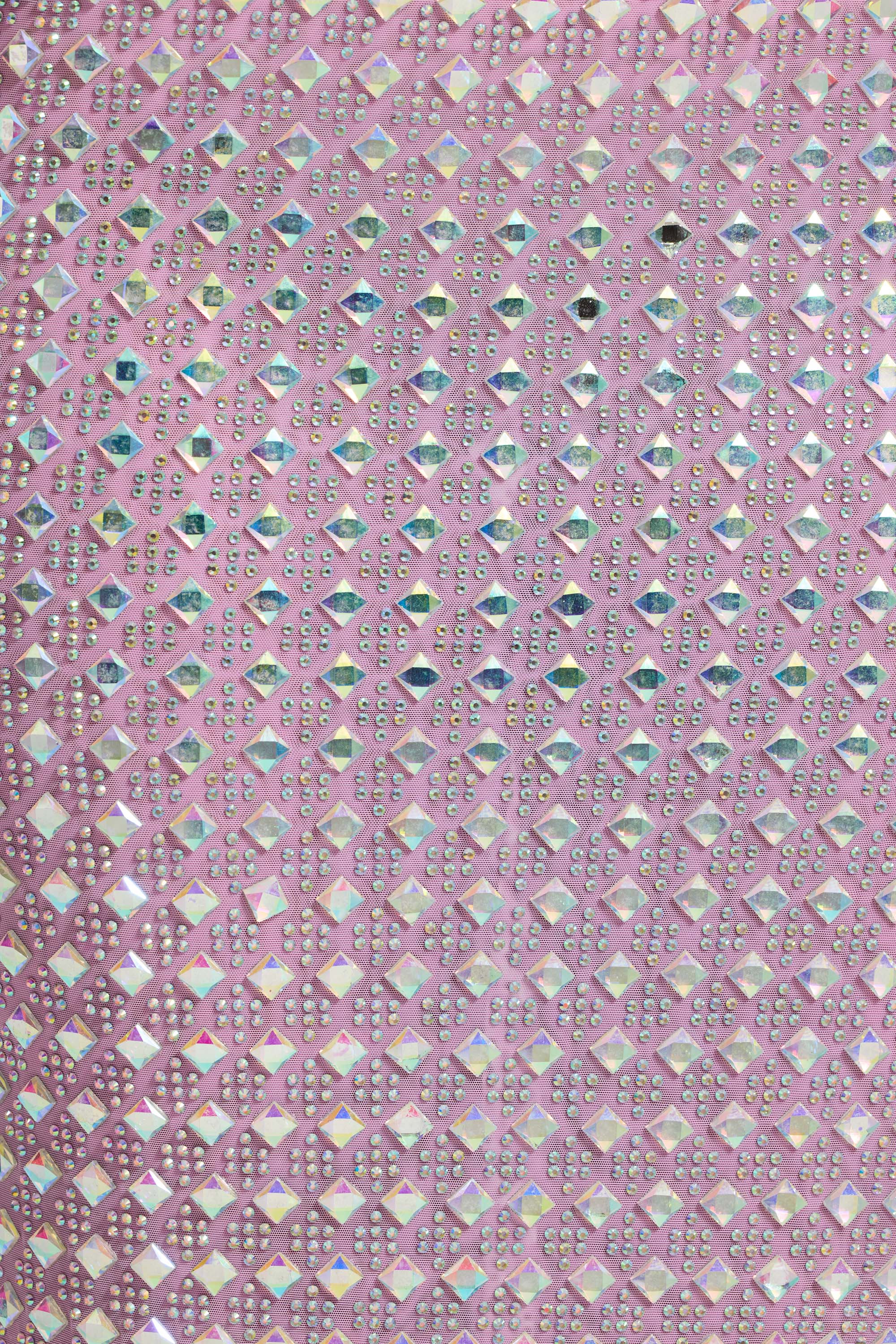 Premium dual layered, stretch mesh fabric with hotfix embellishment (85% Polyester, 15% Elastane). This garment contains delicate artisanal hand embellishment, and it is normal that overtime embellishment may become loose. Additional embellishment has been provided for repairs.