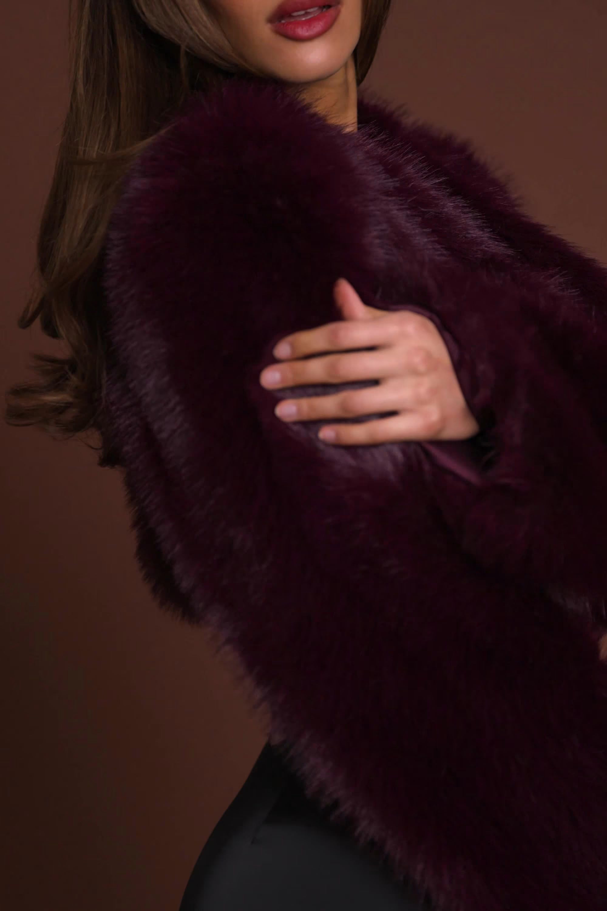 Glam layering made effortless. The Almerinda bolero is crafted from premium faux mink and cut to a cropped length for maximum impact. It features a classic round neckline, wide sleeves, and a delicate hook-and-eye front fastening for a flawless finish. Perfect for draping over your most glamorous looks.