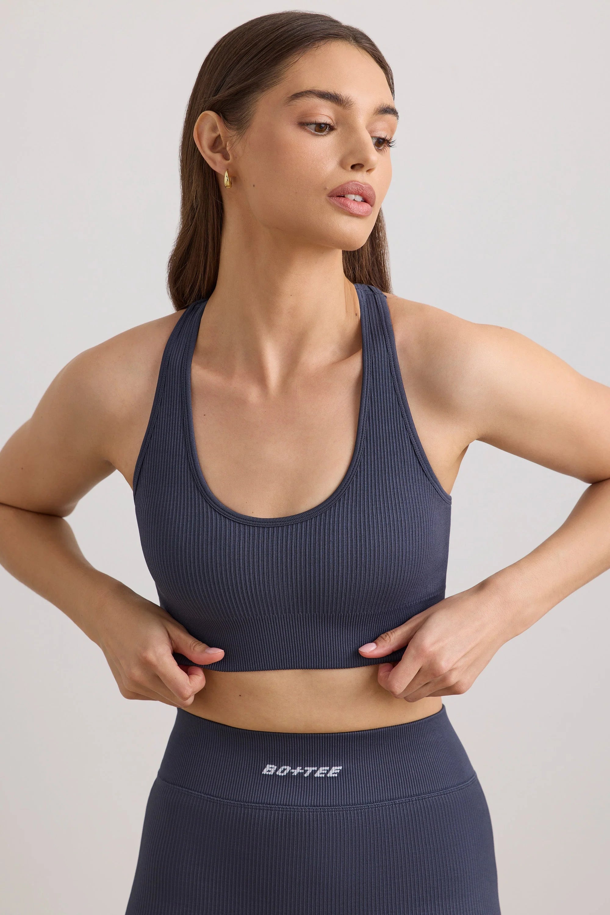 FlexiRib Racerback Sports Bra in Indigo Slate