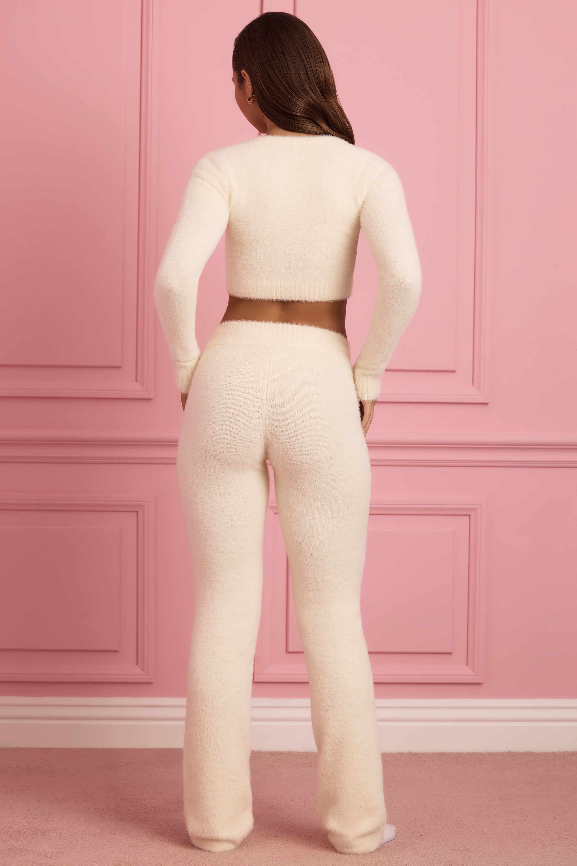 Fluffy Knit Wide-Leg Trousers in Ivory