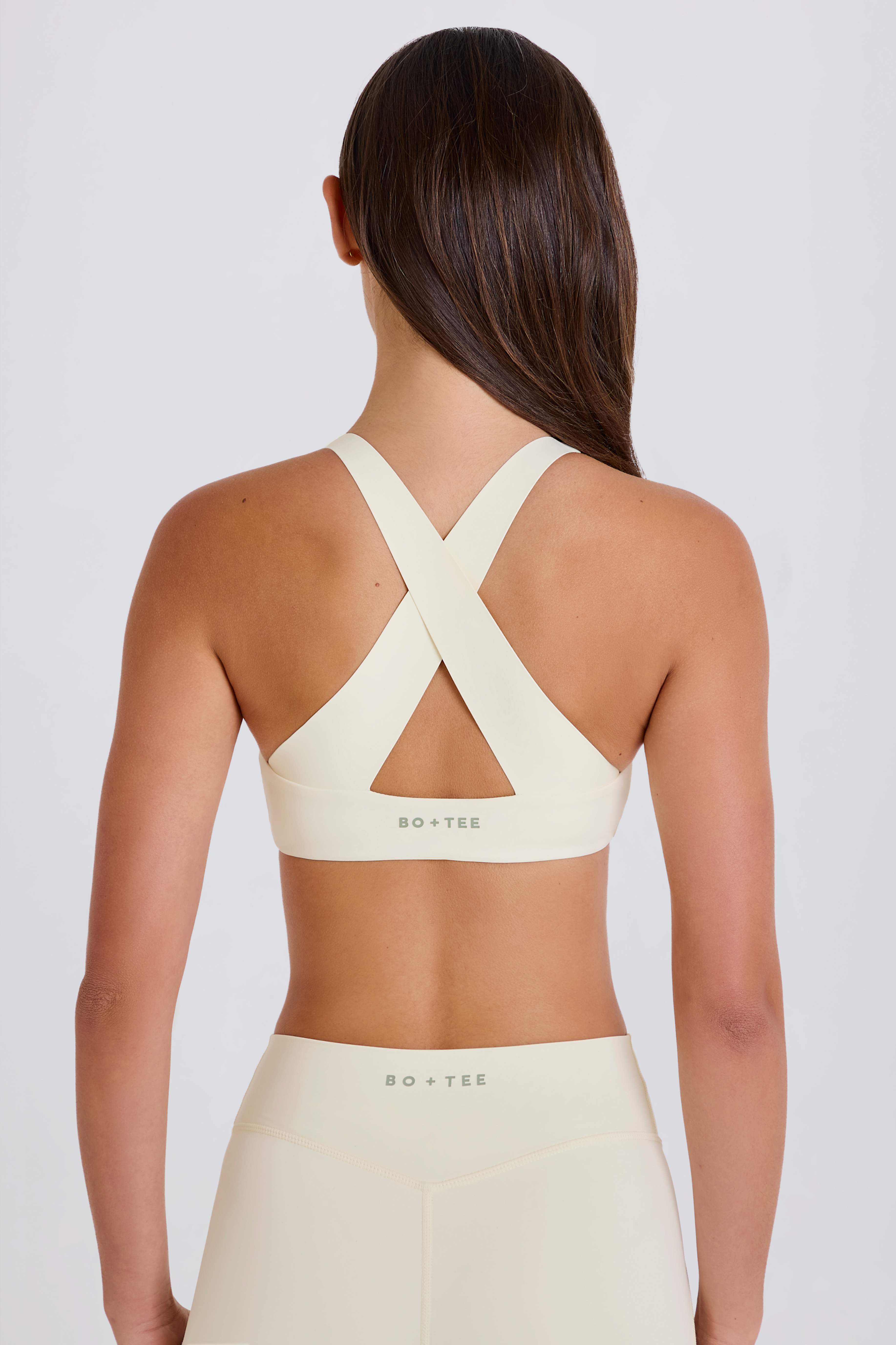 Four-Way Stretch Crossback V-Neck Sports Bra in Cream