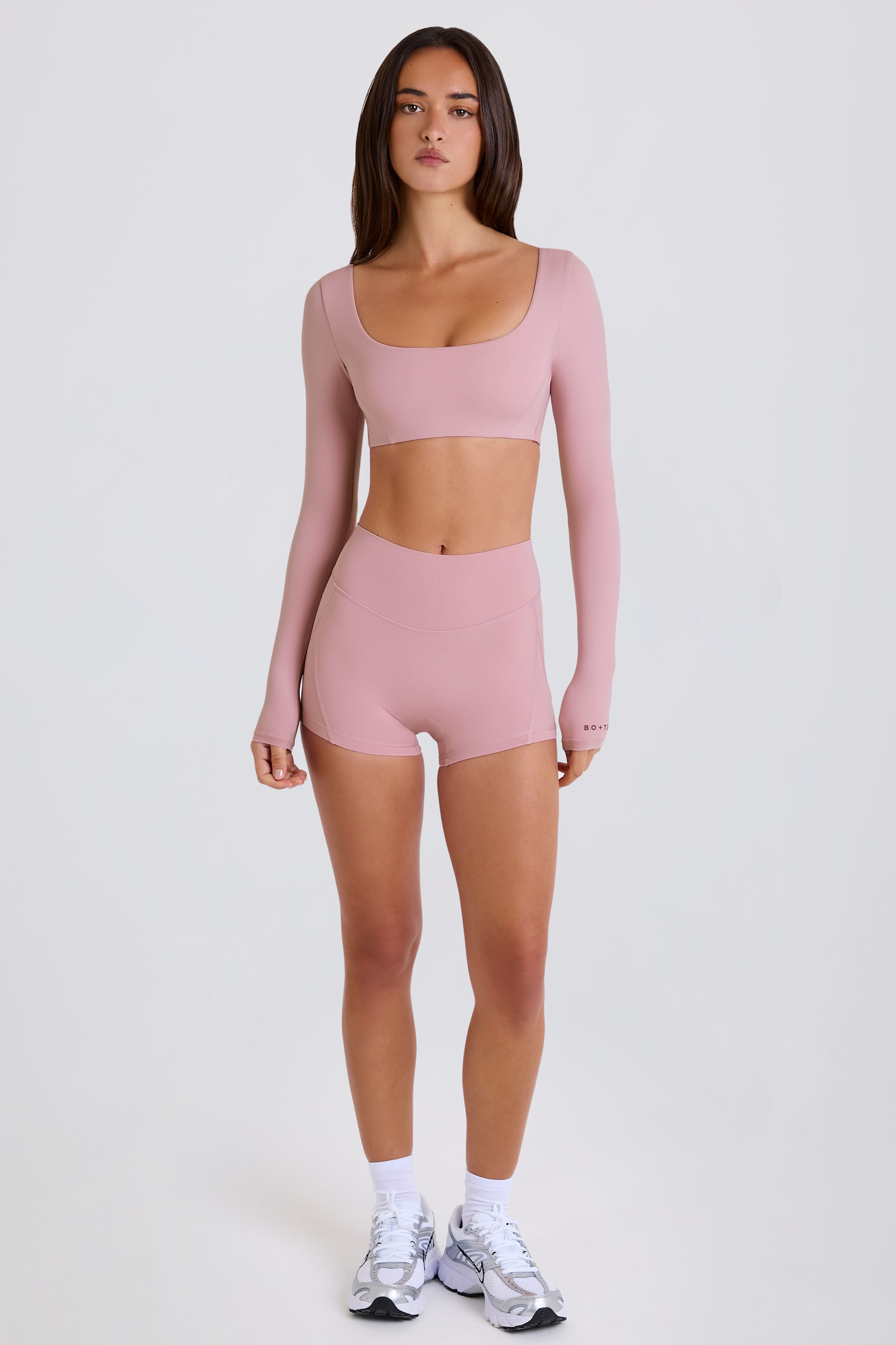 Four-Way Stretch High-Waist Mini Shorts in Mauve