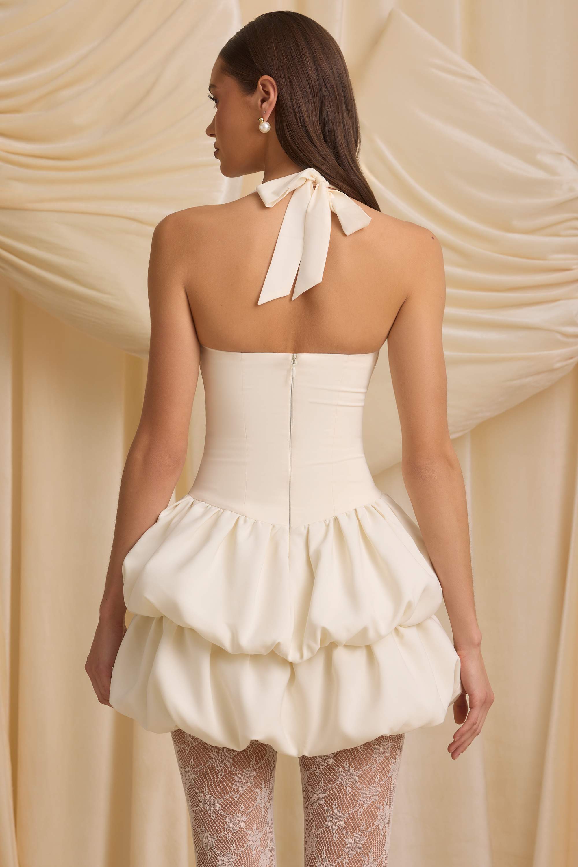 Halterneck Layered Bubble Hem Corset Mini Dress in Ivory