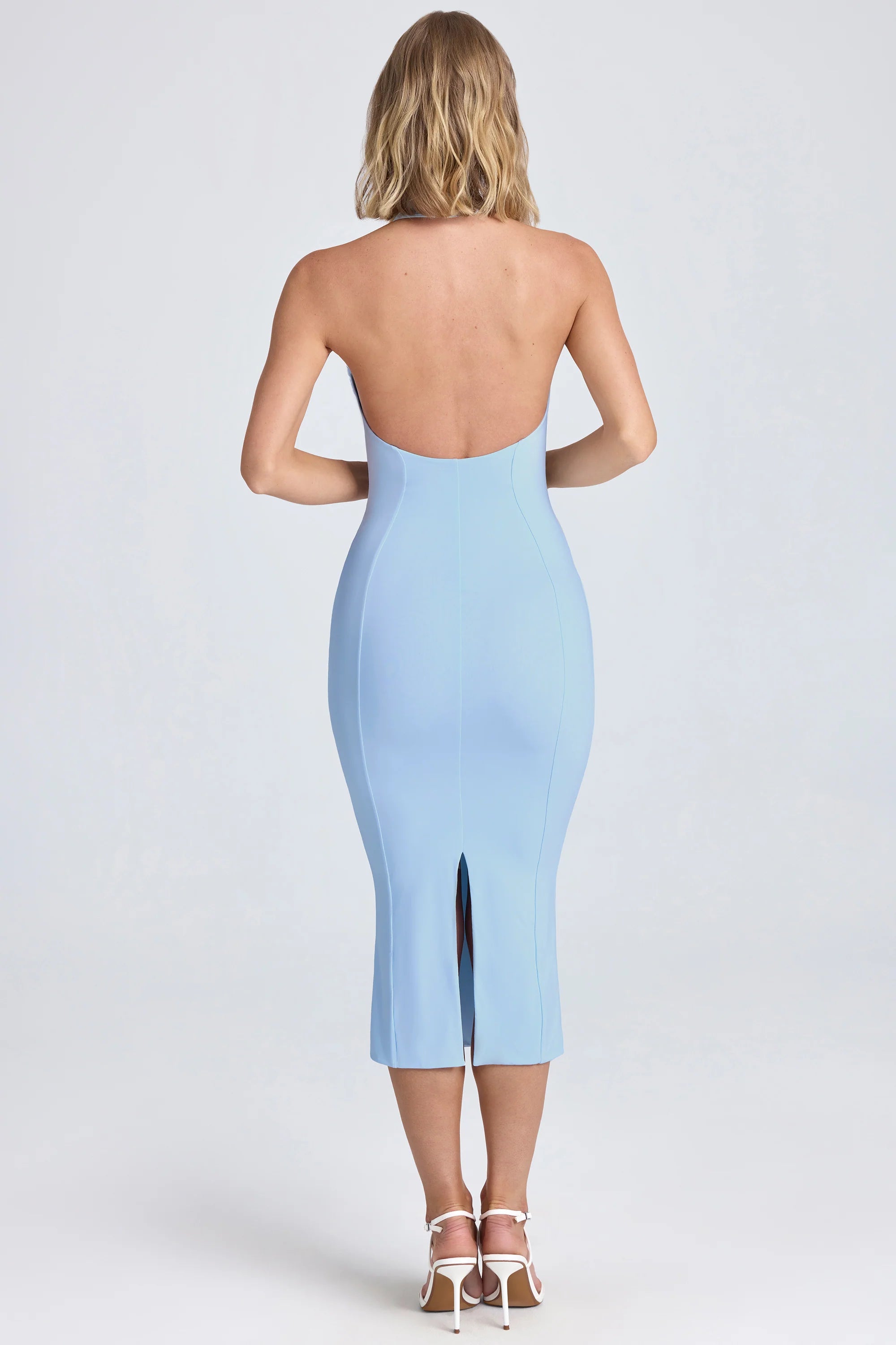 Classic silhouettes, head-turning details. Inspired by artisanal elements, the Ulanni midaxi dress is a unique take on a timeless style, adorned with tonal hand-applied ruffle appliqués at the bust. It’s crafted from stretchy sheer jersey to a halterneck bodycon silhouette with flattering princess seams that create a sculpted look. It turns to reveal a low open back and features a centre-back split.
