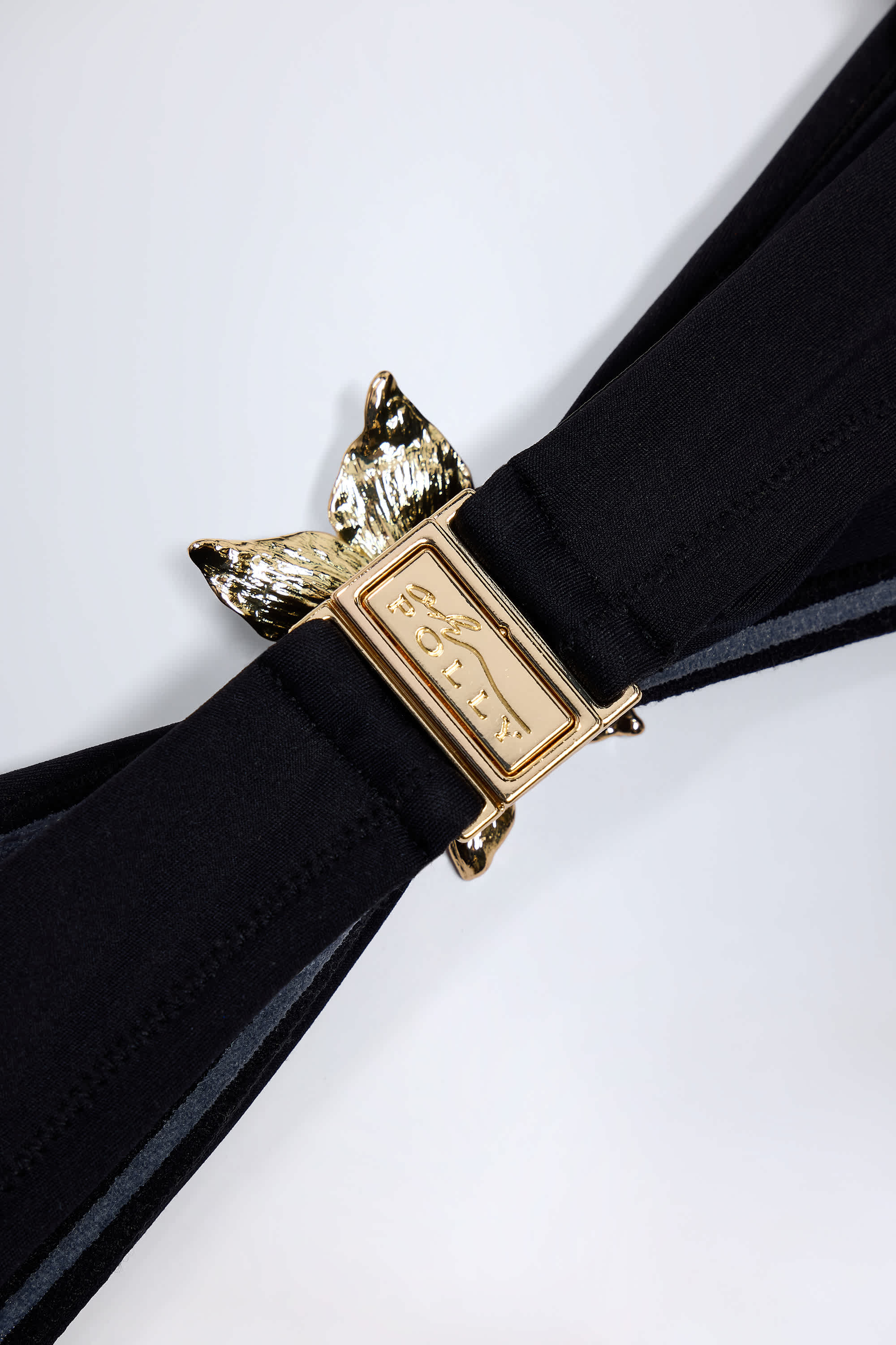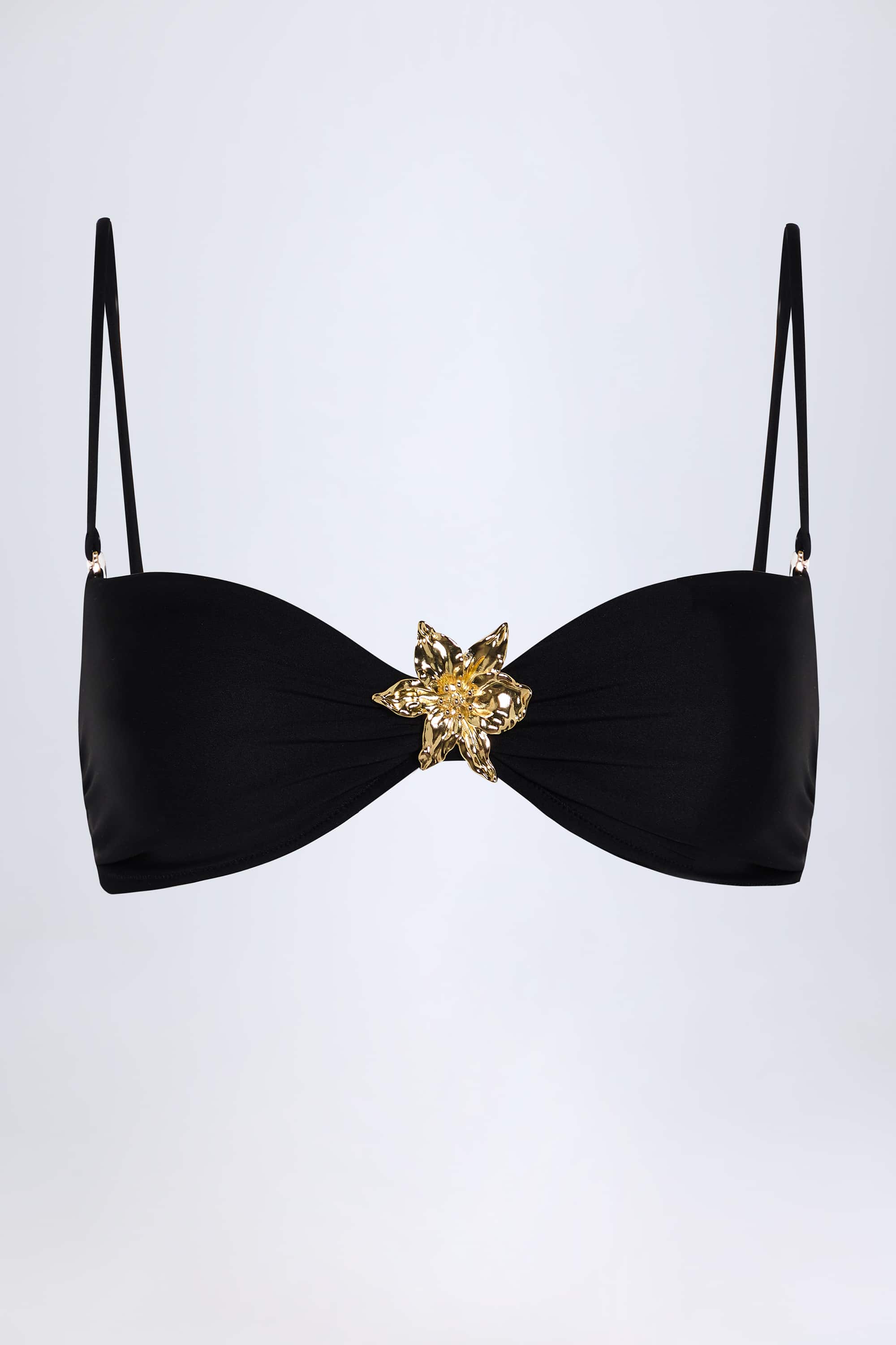All in the details. Embrace a tropical mood with the Baracoa bikini top, crafted from our premium stretch-jersey swim fabric and elevated with gold-tone floral hardware at the front, inspired by lush blooms. Cut to a bandeau silhouette, it’s framed with multiway detachable straps and features a clasp fastening at the back for a secure fit.