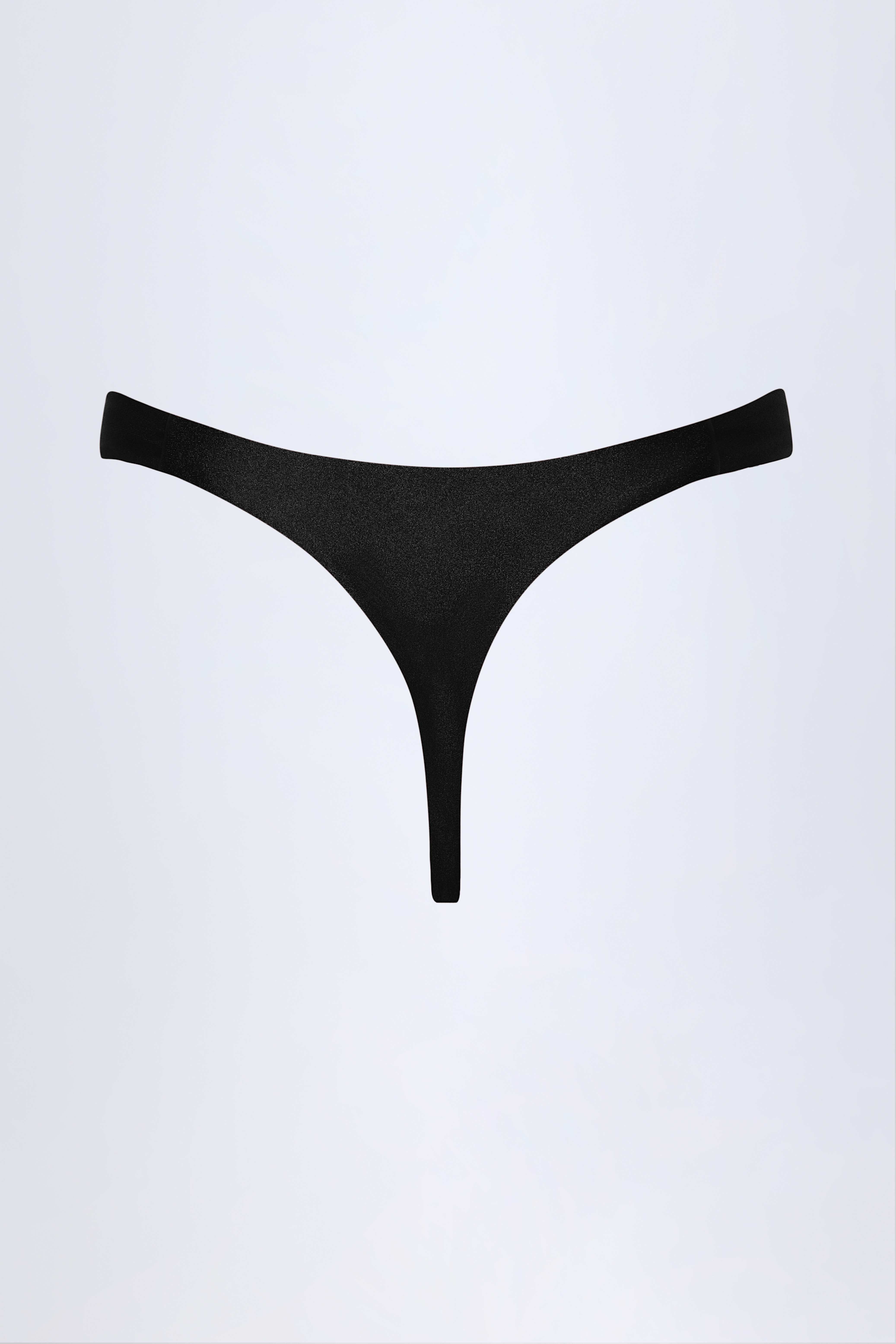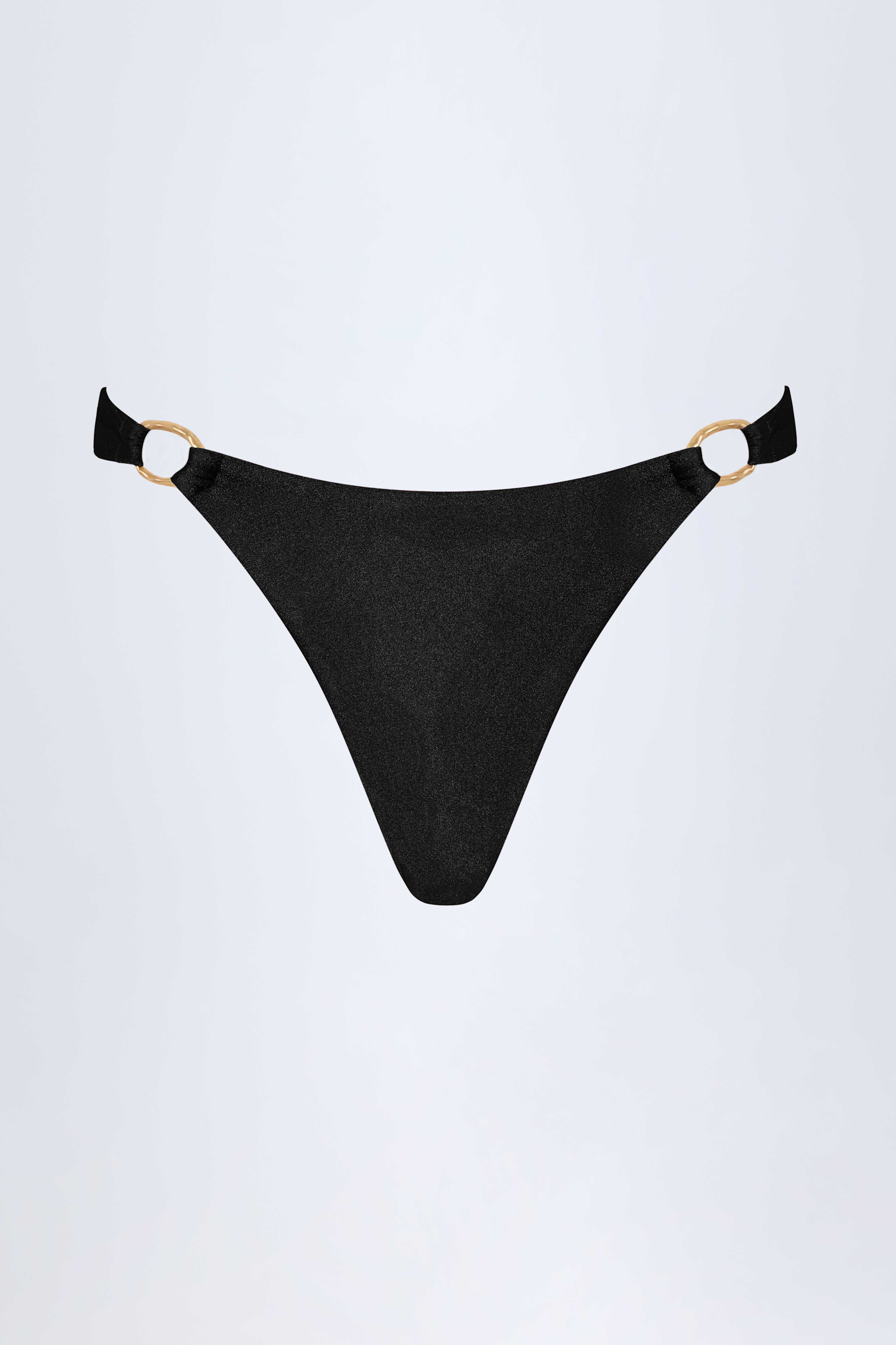 Hardware-Detail Thong Bikini Bottoms in Black