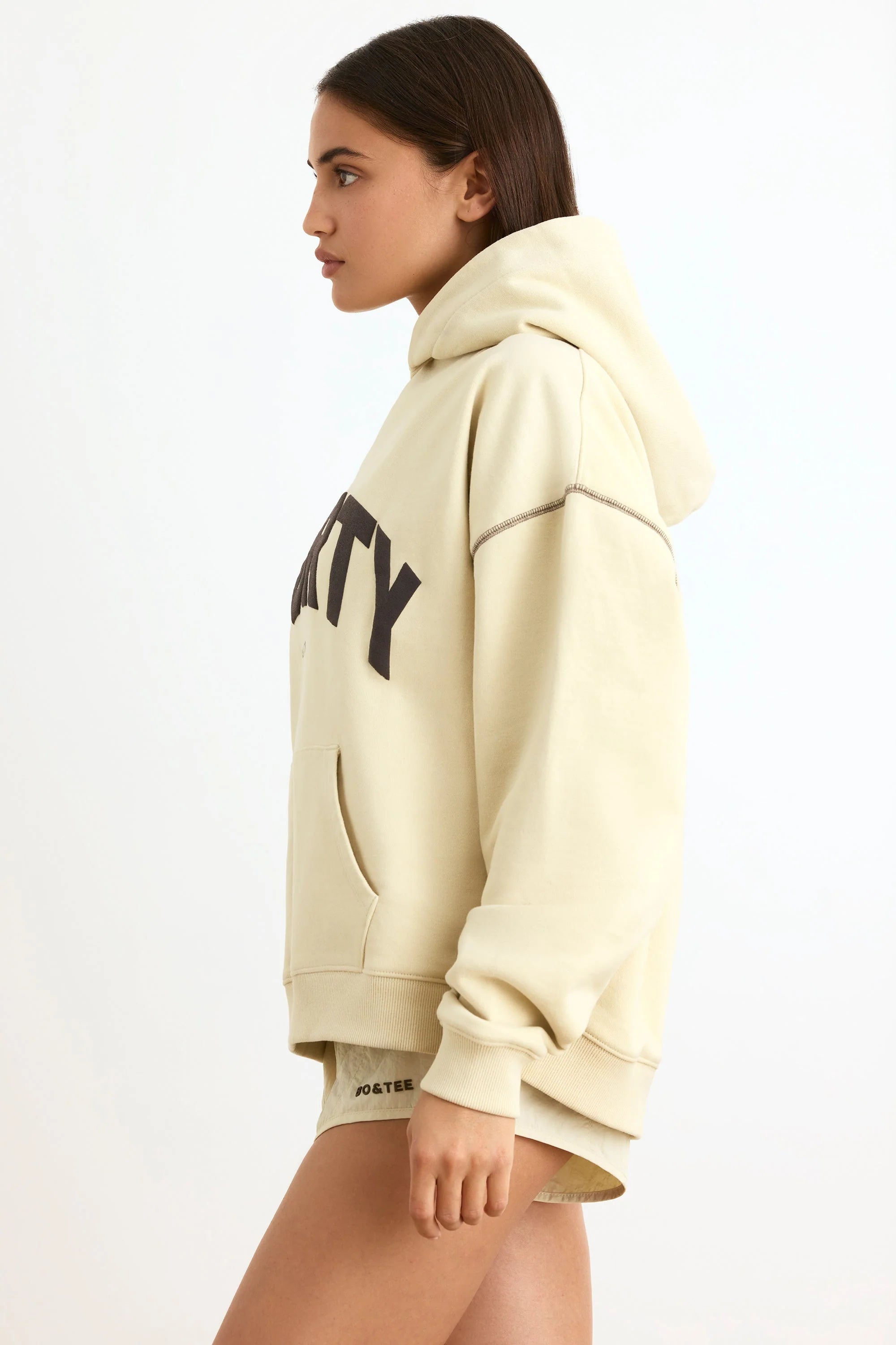 Your uniform for rest and recreation. Available in three muted shades, this washed hoodie is made from our 330gsm heavyweight custom-knit fabric with a super soft fleece inner for a cosy feel. It’s cut to a classic oversized fit with a kangaroo pocket and dropped shoulders for comfortable layering and features a graphic sporty slogan at the chest.